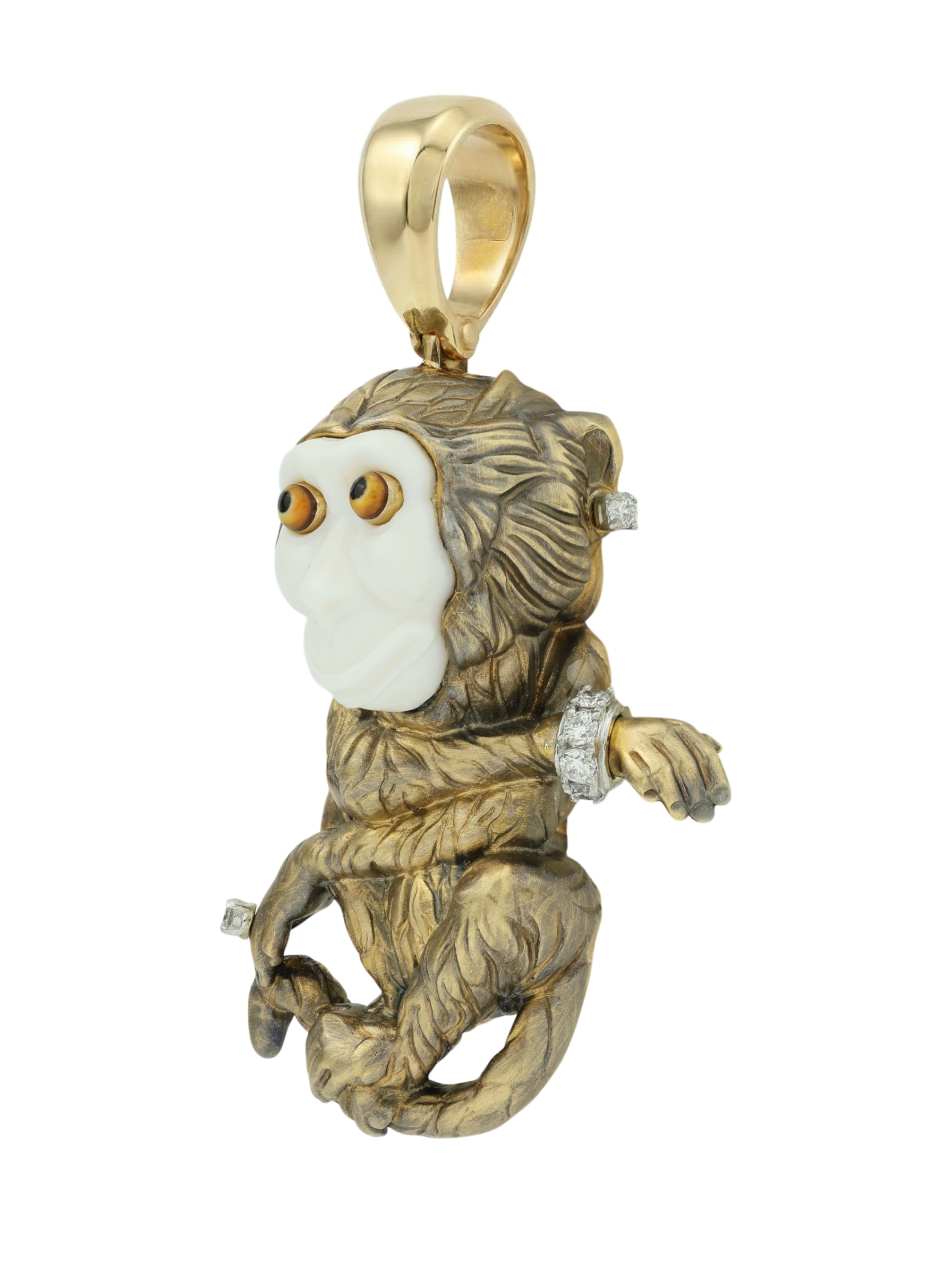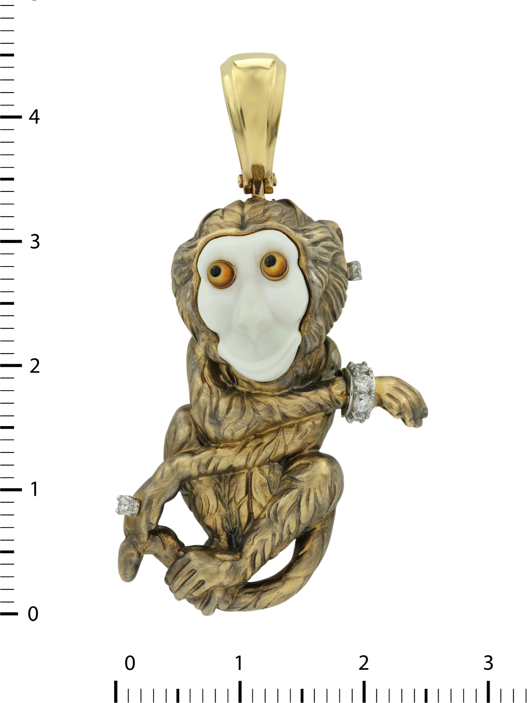 Подвеска из лимонного золота c эмаль, бриллиантами, рубином и бивнем мамонта