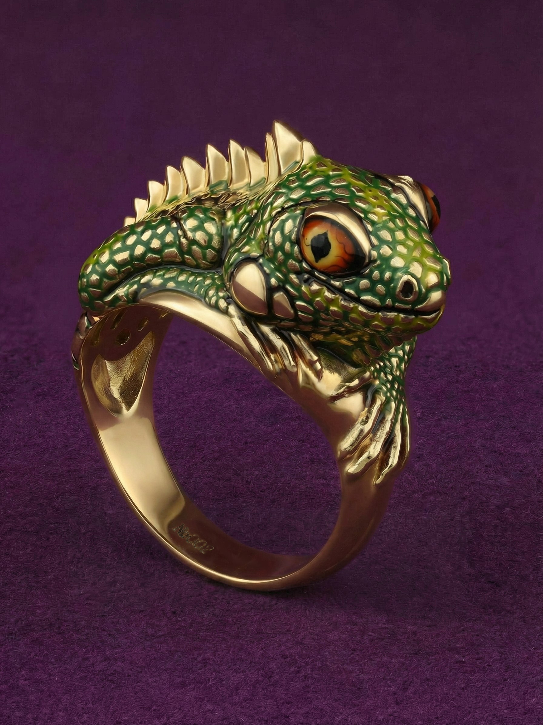 Кольцо из лимонного золота c эмалью и рубином