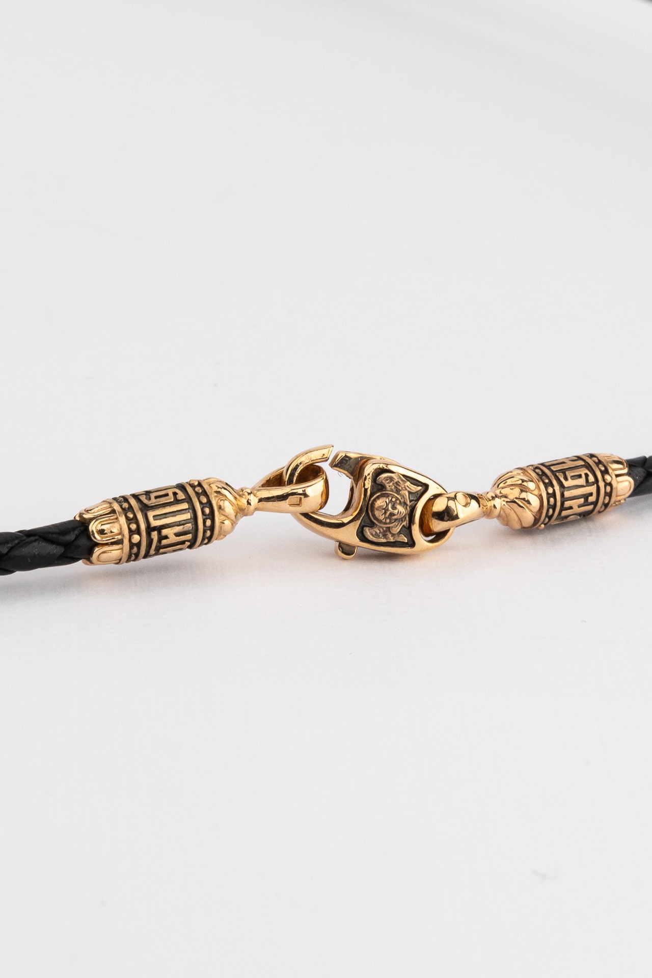 На шнурке цепи-шнурка расположены вставки, а на концах концевики с надписью: «Спаси и сохрани». Соединяет концевики замочек-карабин в форме рыбки. На замочке изображен шестикрылый Серафим.