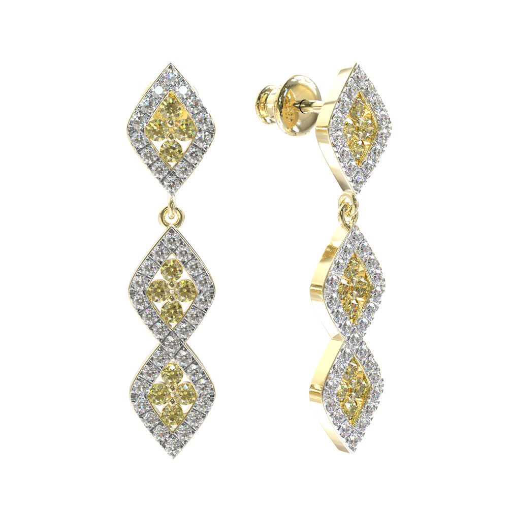 Серьги из лимонного золота c бриллиантами и сапфиром