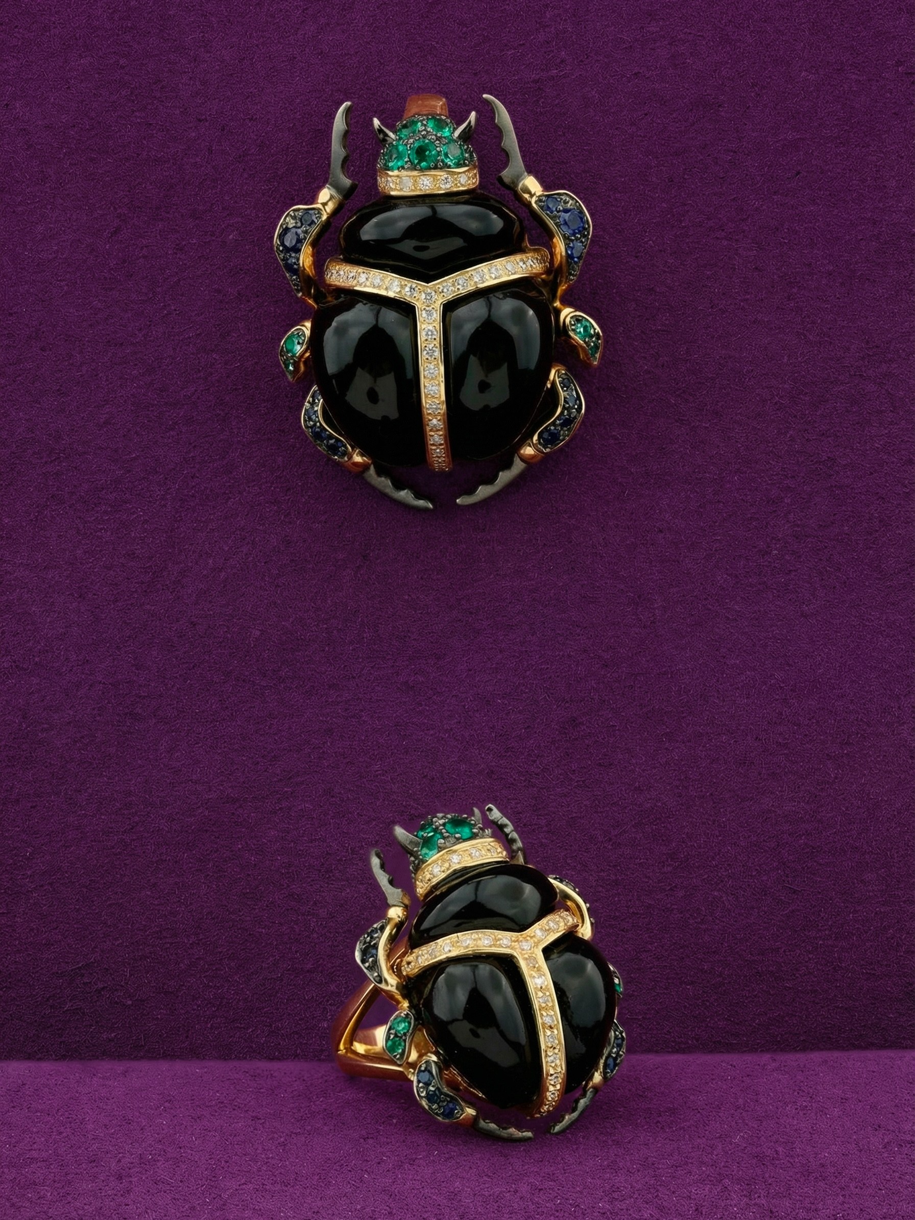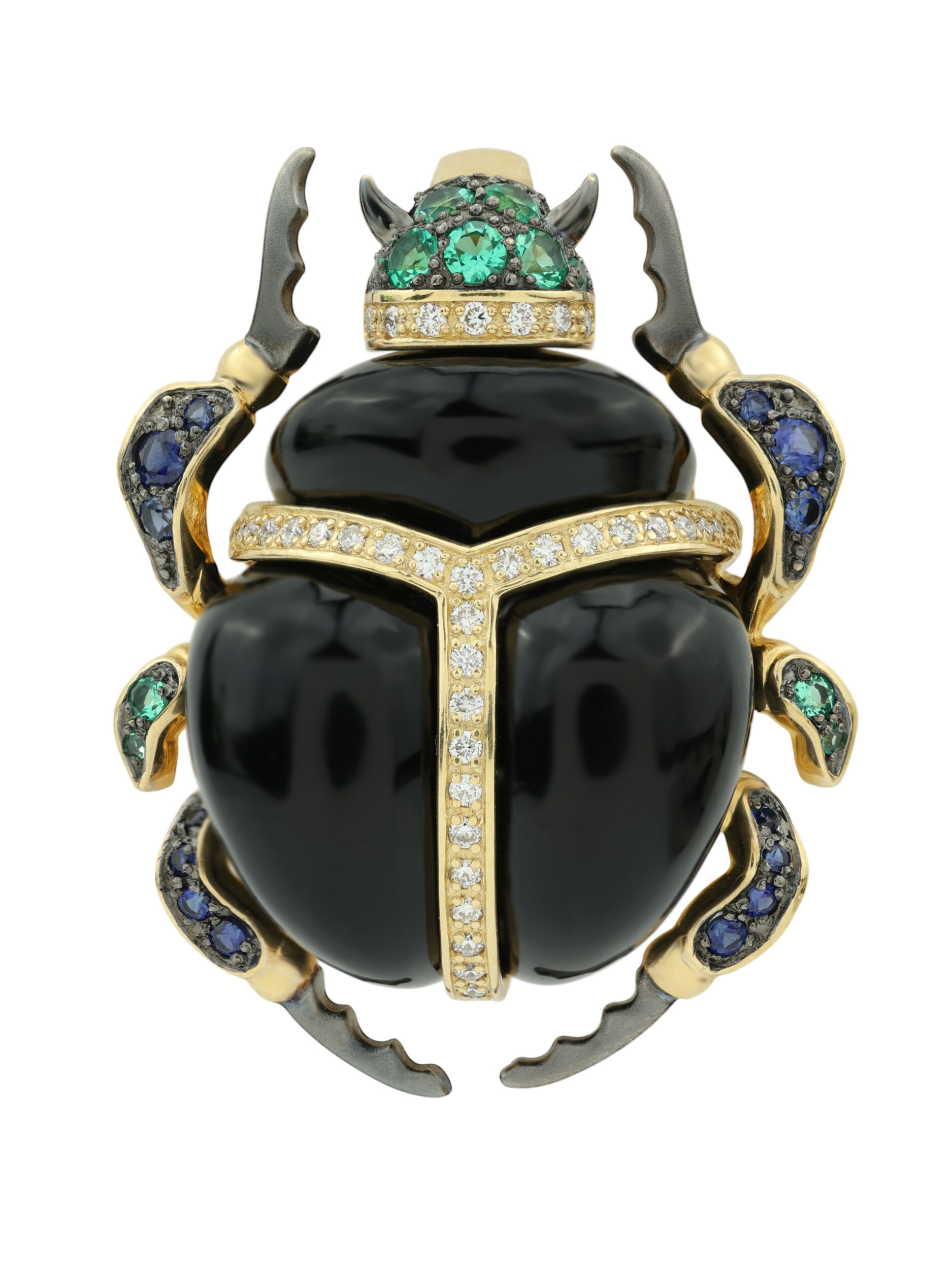Подвеска из лимонного золота c бриллиантами, сапфиром, изумрудом, ониксом и изумрудом