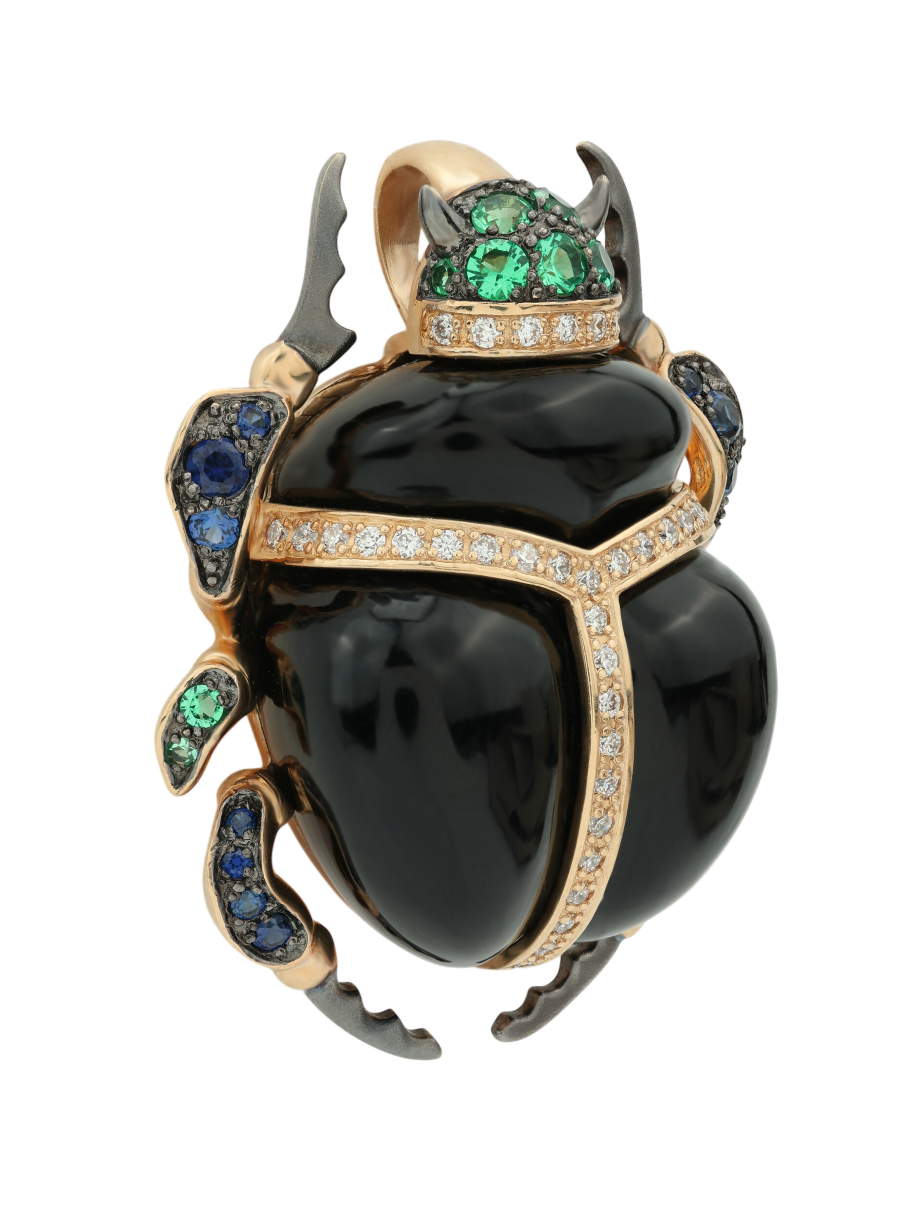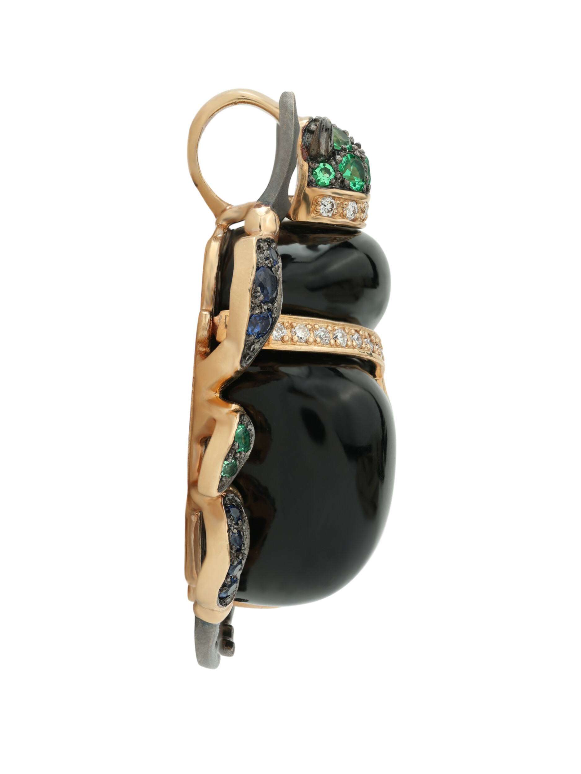 Подвеска из золота c бриллиантами, сапфиром, изумрудом и ониксом