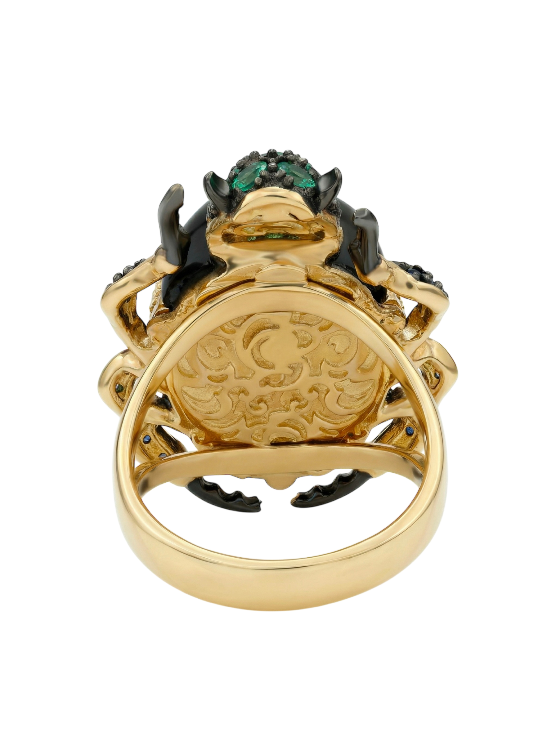 Кольцо из лимонного золота c бриллиантами, сапфиром, изумрудом и ониксом