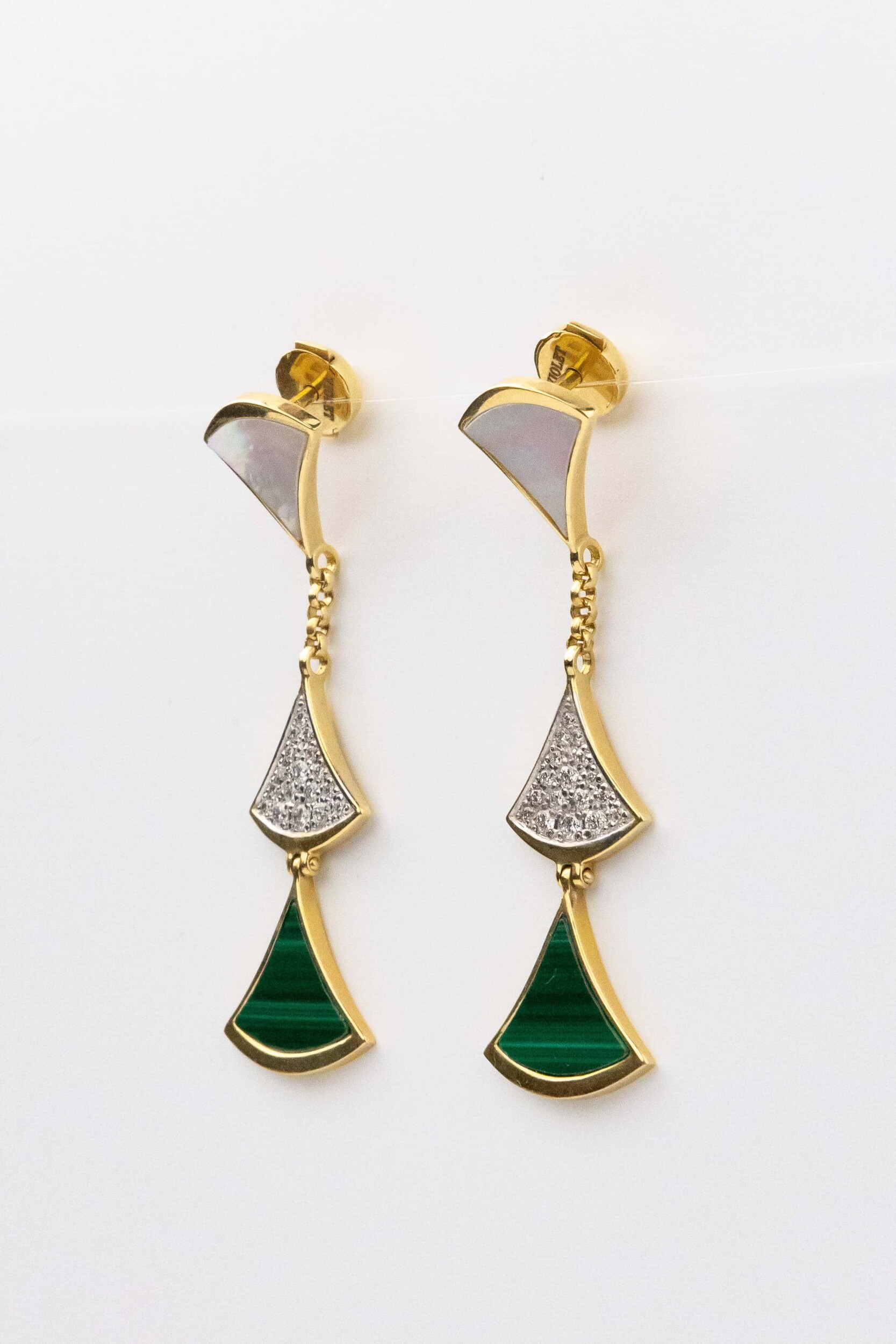 Серьги из лимонного золота c бриллиантами, малахитом и перламутром