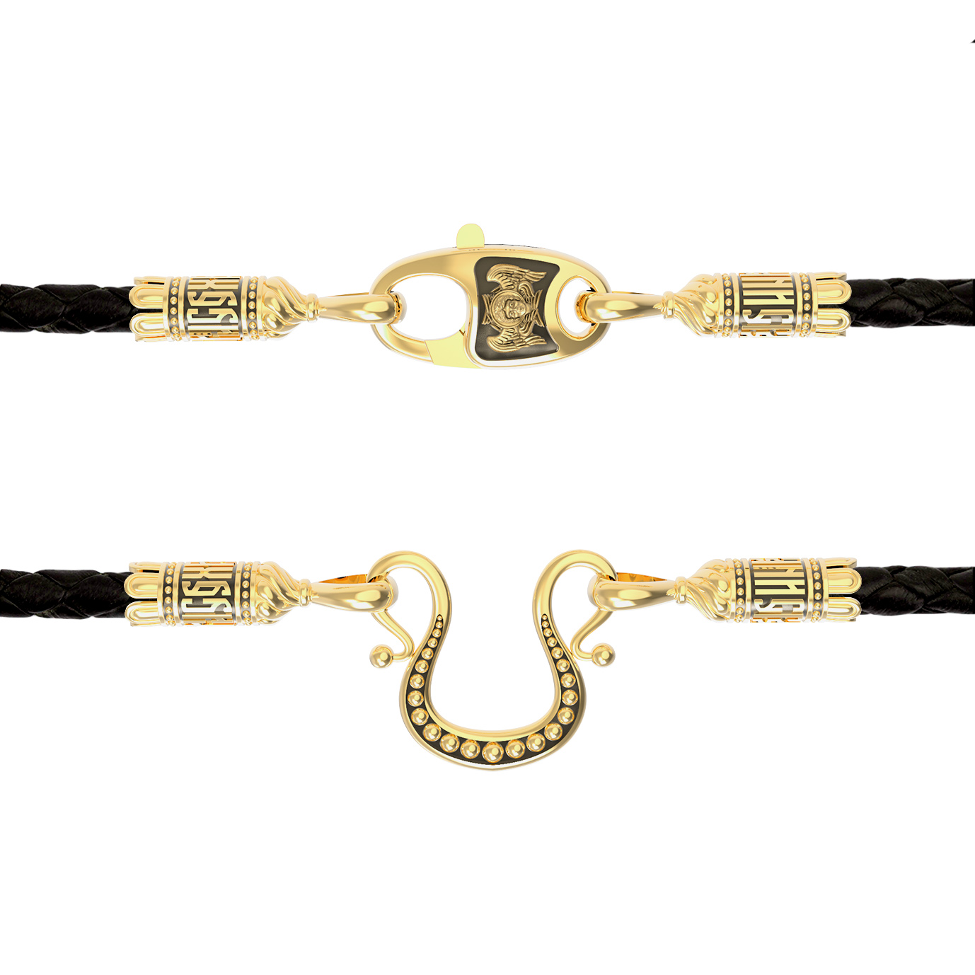 Шнурок кожаный из лимонного золота c кожаным шнурком