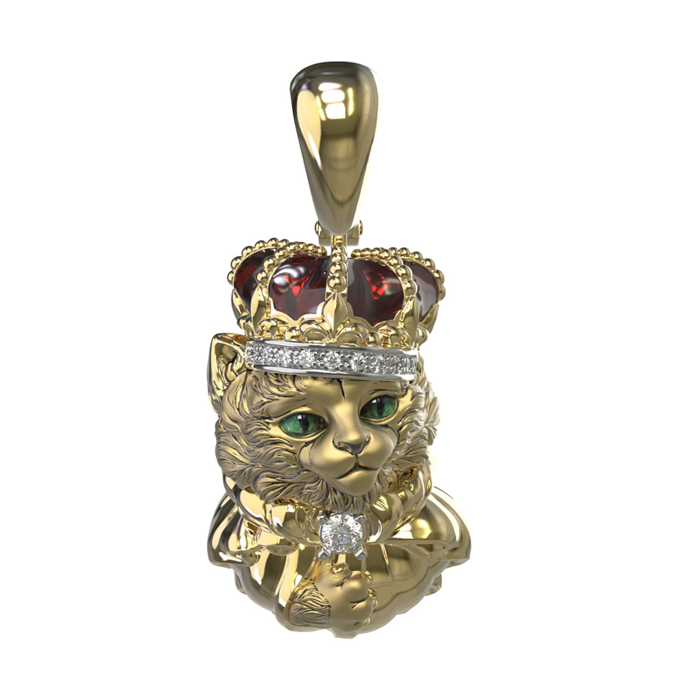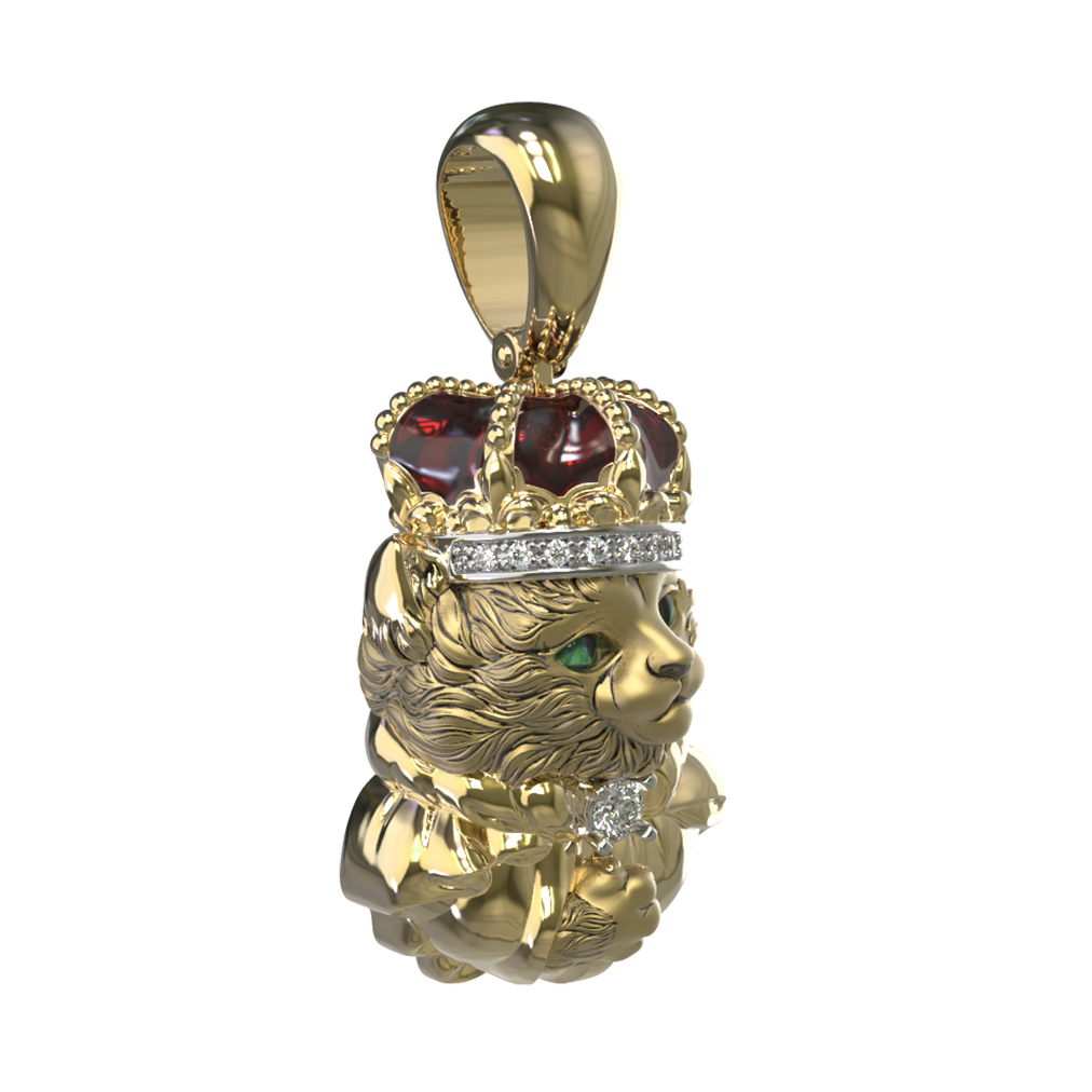 Подвеска из лимонного золота c эмаль, бриллиантами и рубином