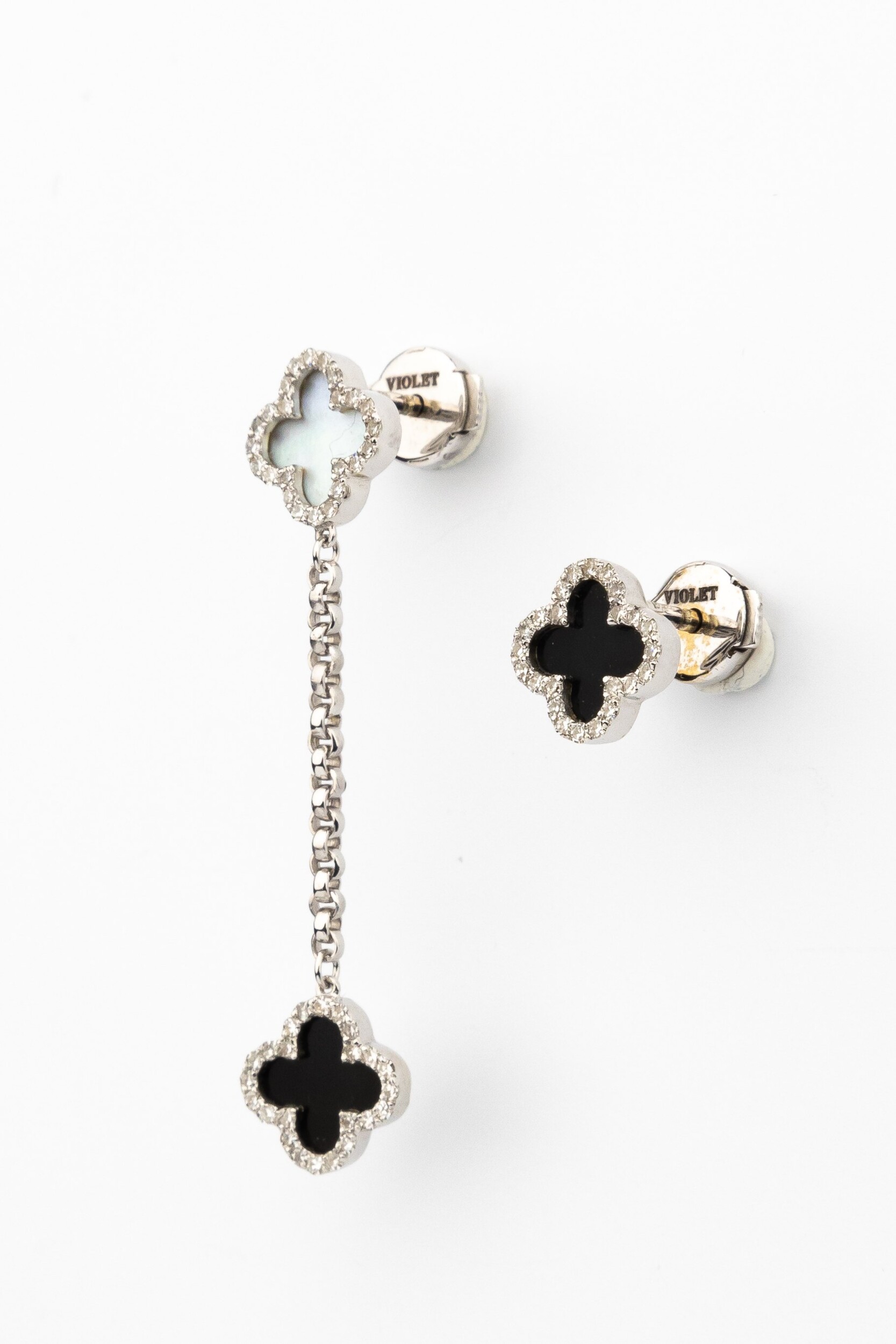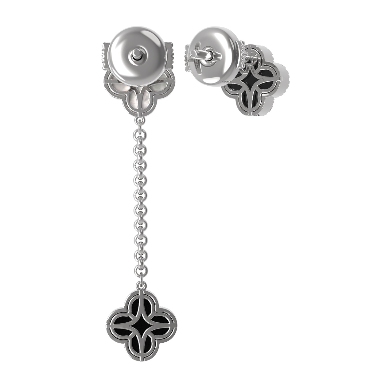 Серьги из белого золота c бриллиантами, ониксом и перламутром