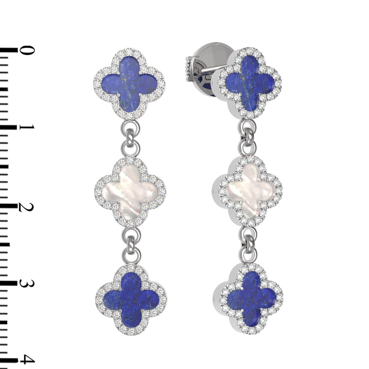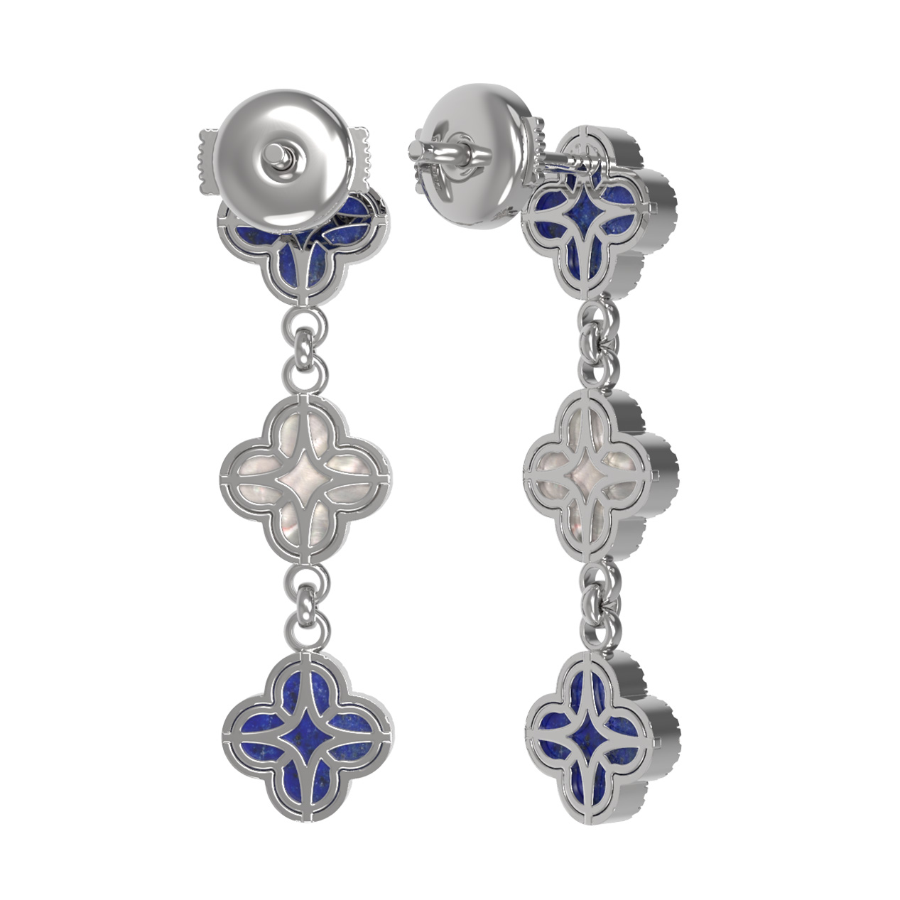 Серьги из белого золота c бриллиантами, лазуритом и перламутром