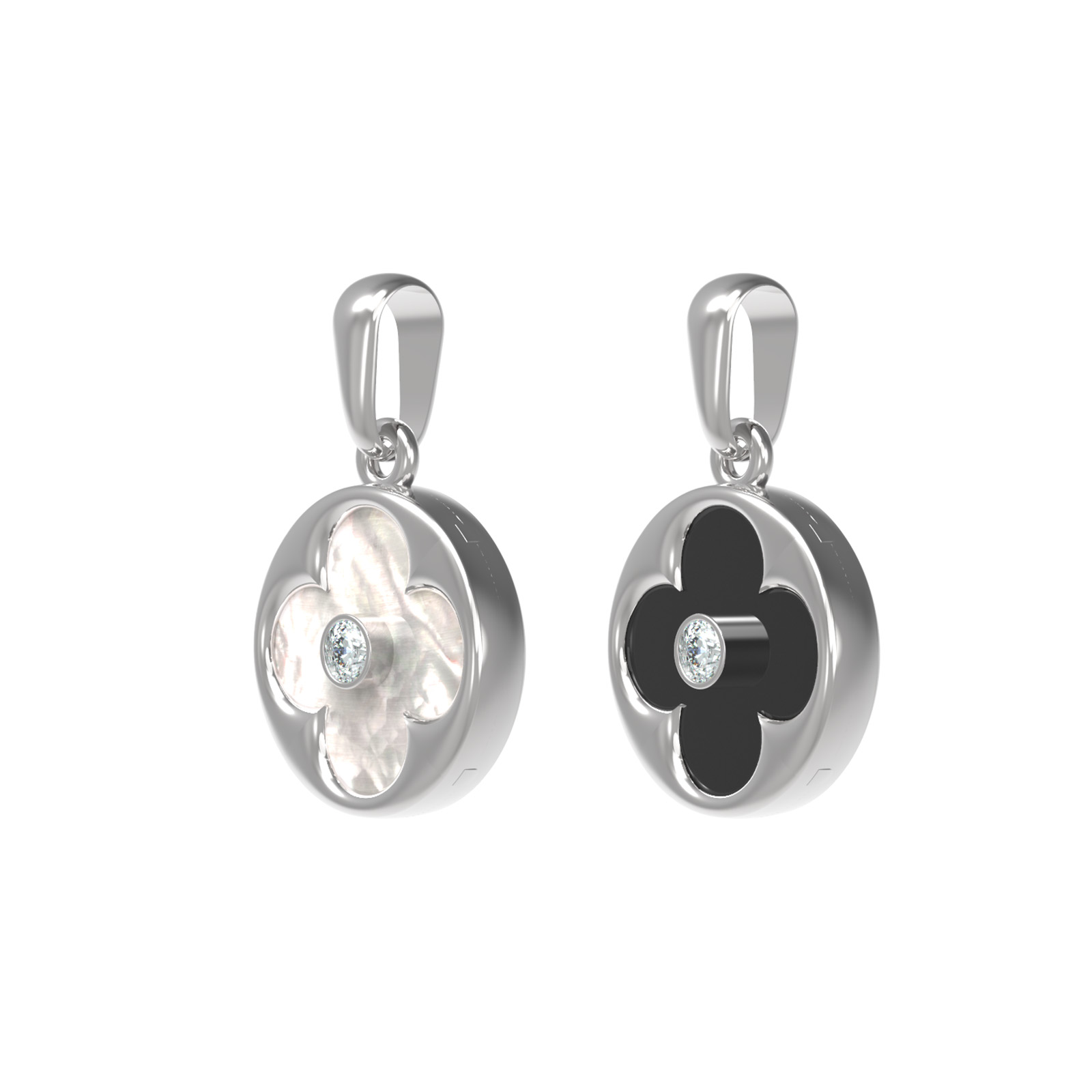 Подвеска из белого золота c бриллиантами, ониксом и перламутром