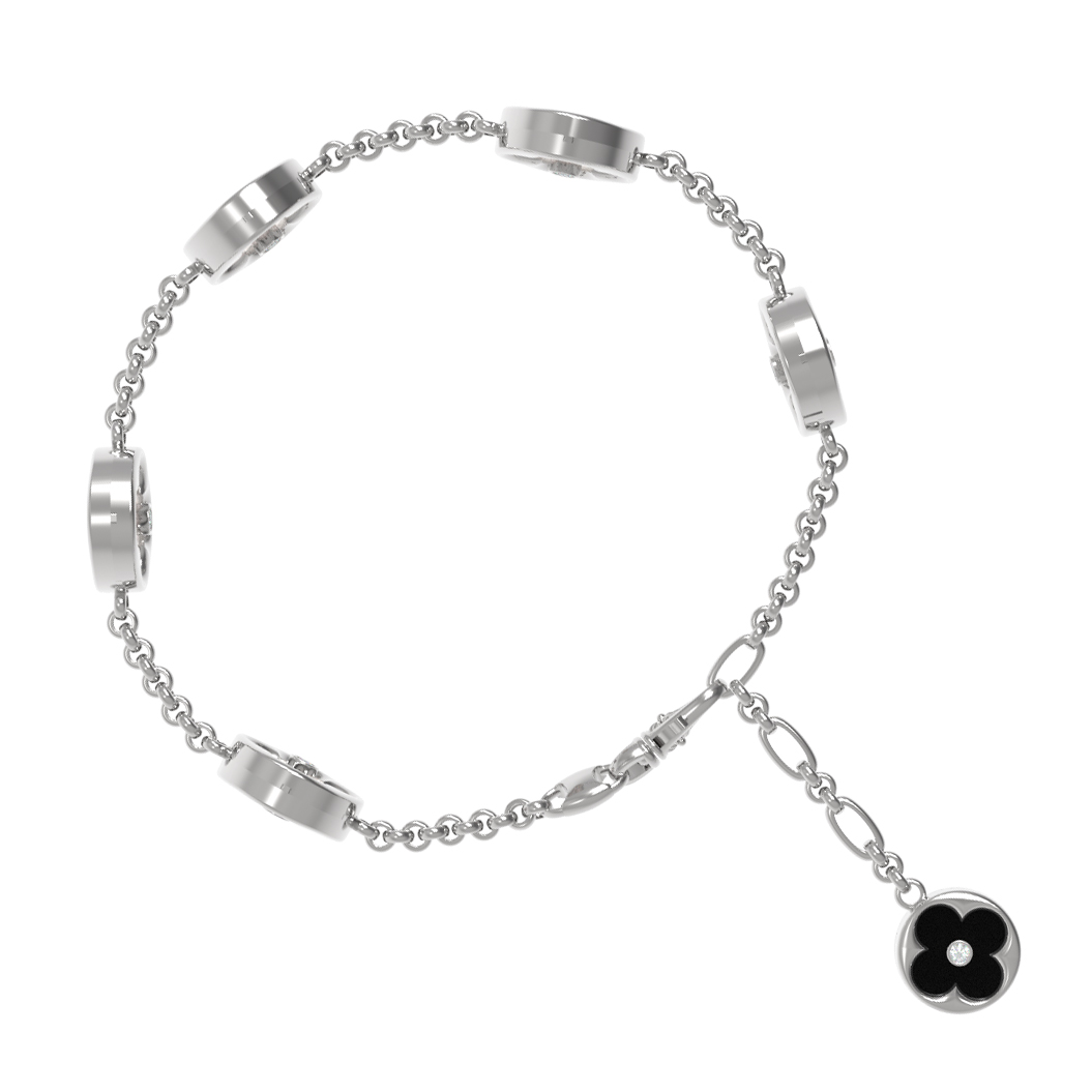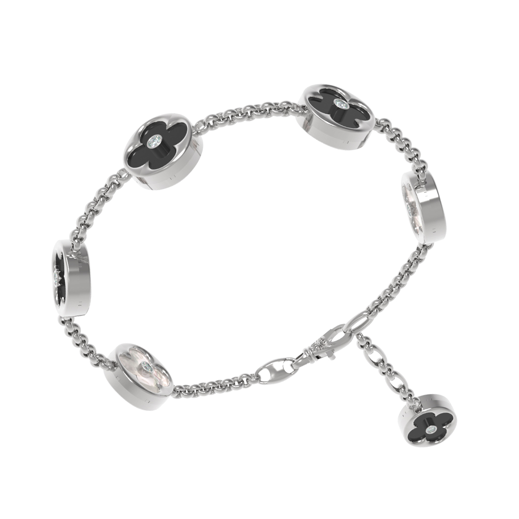 Браслет из белого золота c бриллиантами, ониксом и перламутром