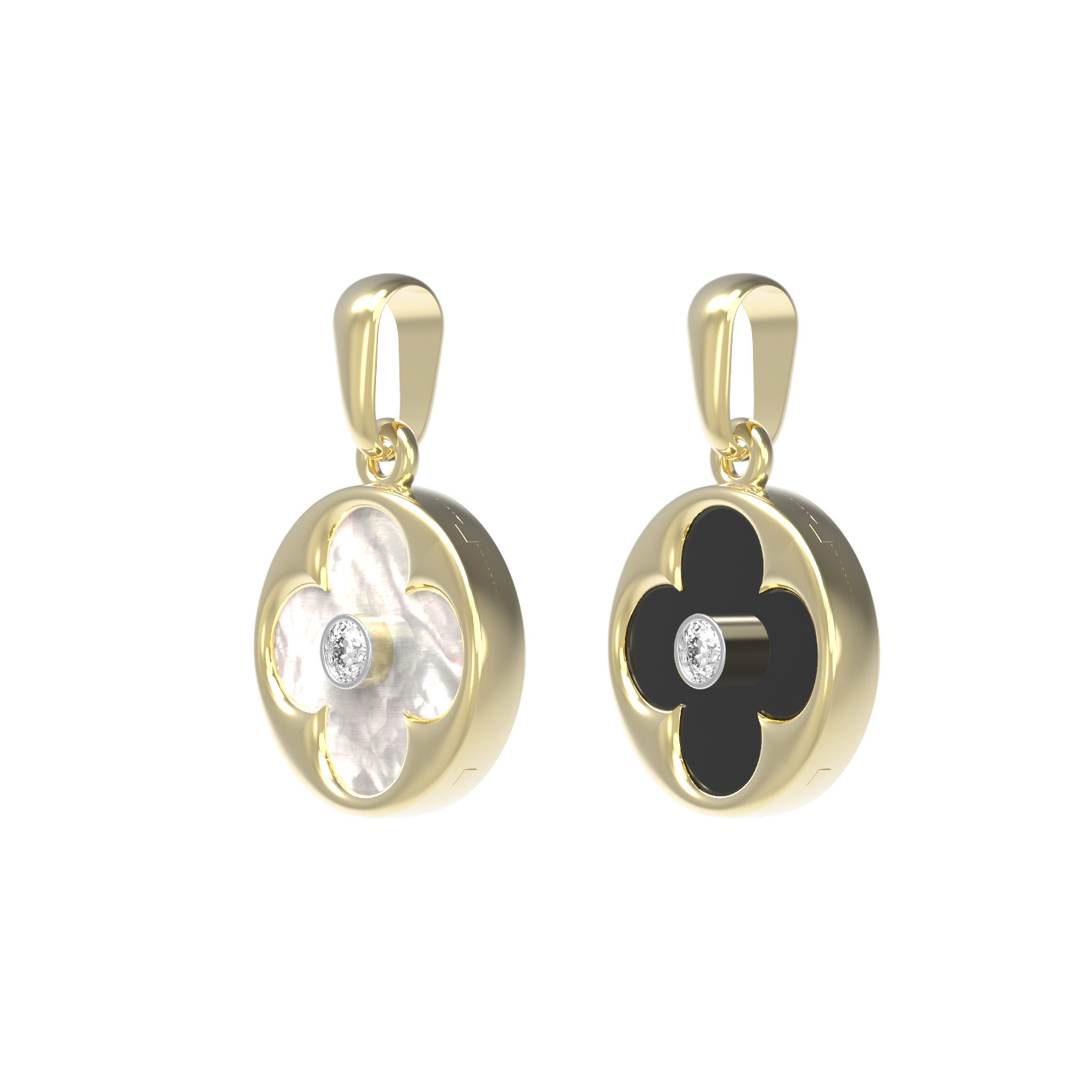 Подвеска из лимонного золота c бриллиантами, ониксом и перламутром