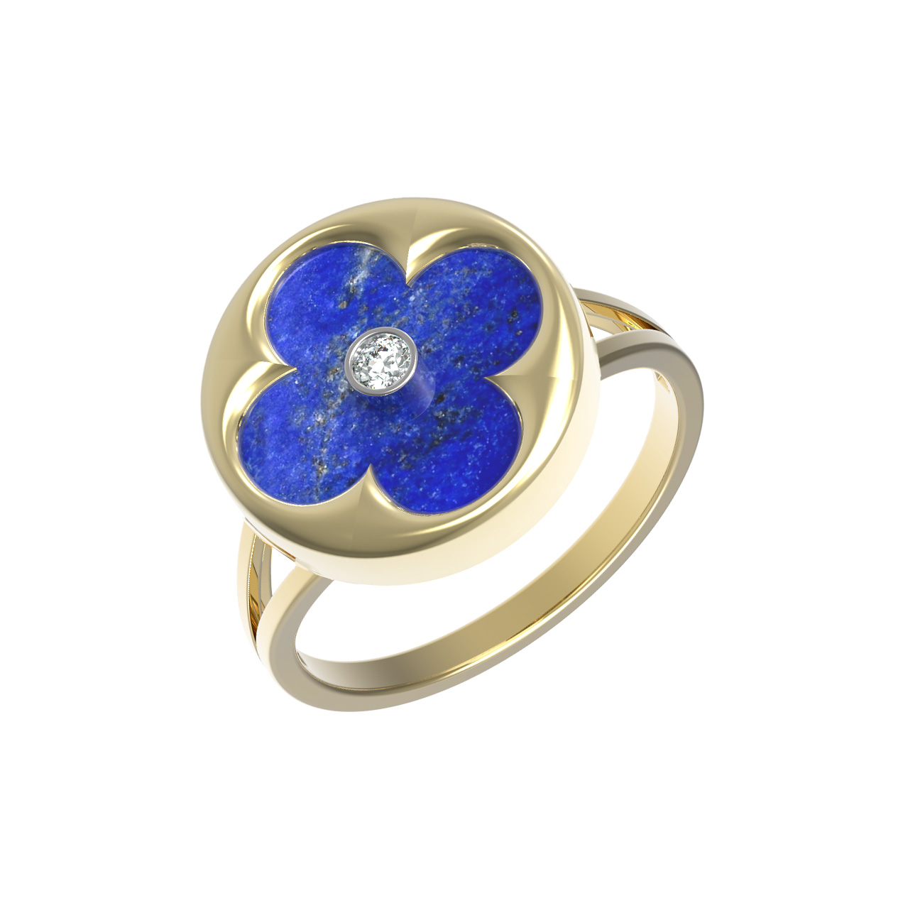 Кольцо из лимонного золота c бриллиантами и лазуритом
