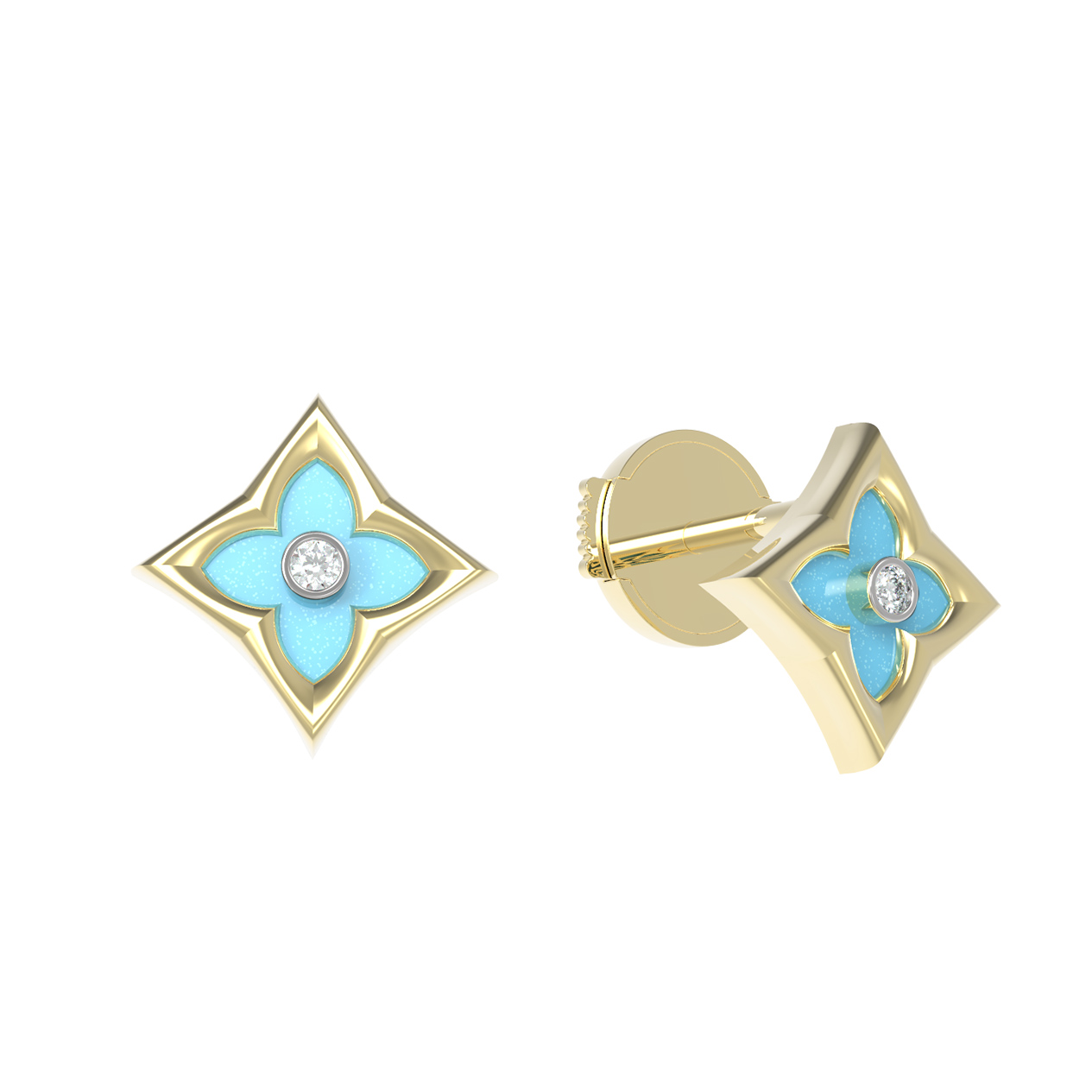 Серьги из лимонного золота c бриллиантами и бирюзой