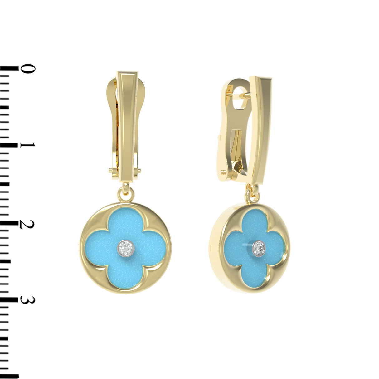 Серьги из лимонного золота c бриллиантами и бирюзой