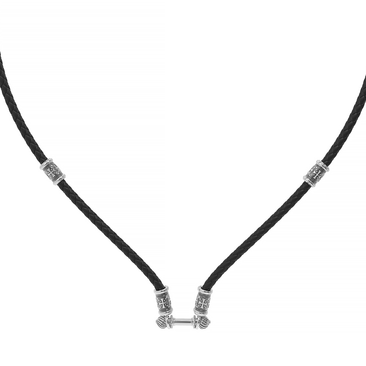 Шнурок кожаный из белого золота c кожаным шнурком