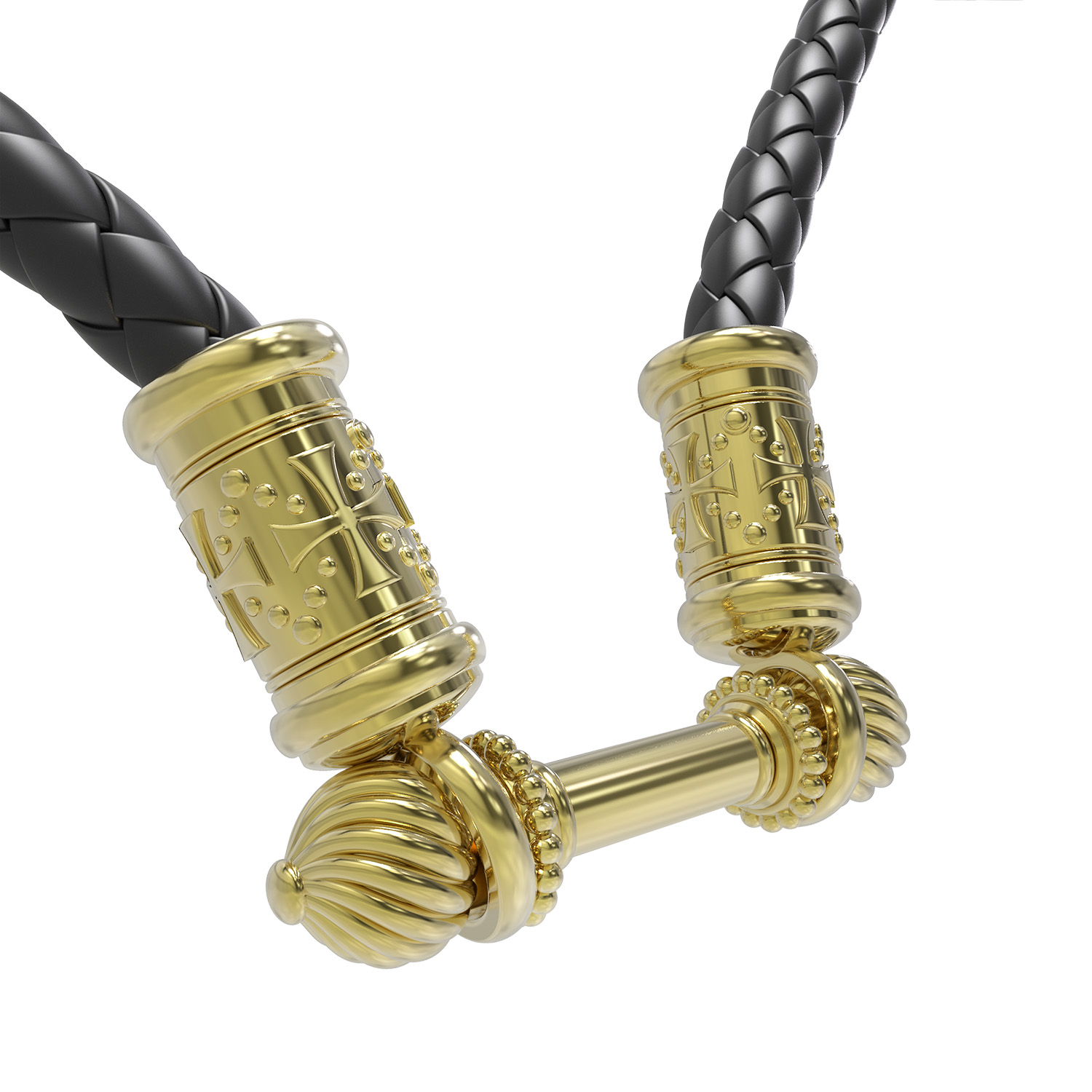 Шнурок кожаный из лимонного золота c кожаным шнурком
