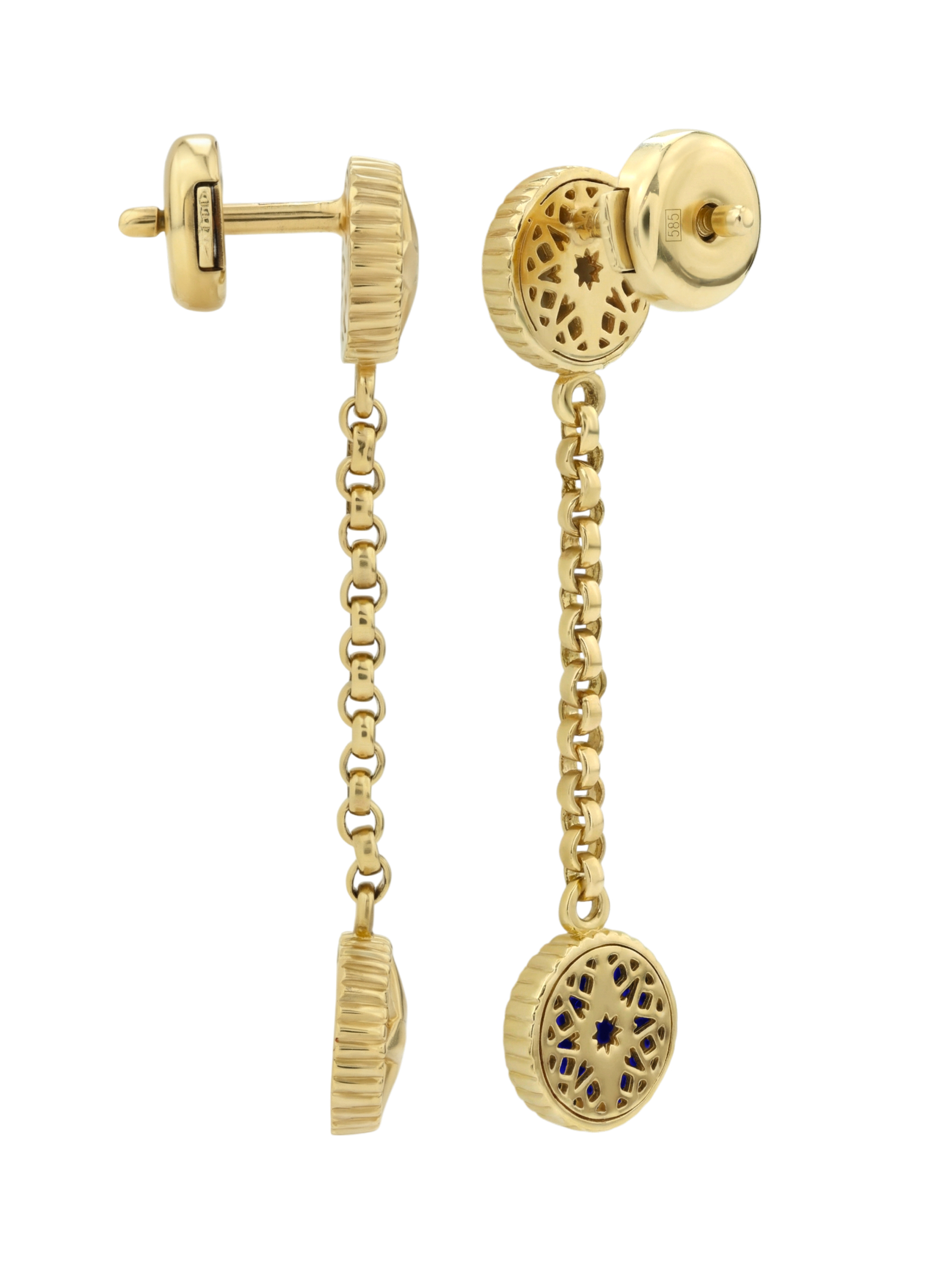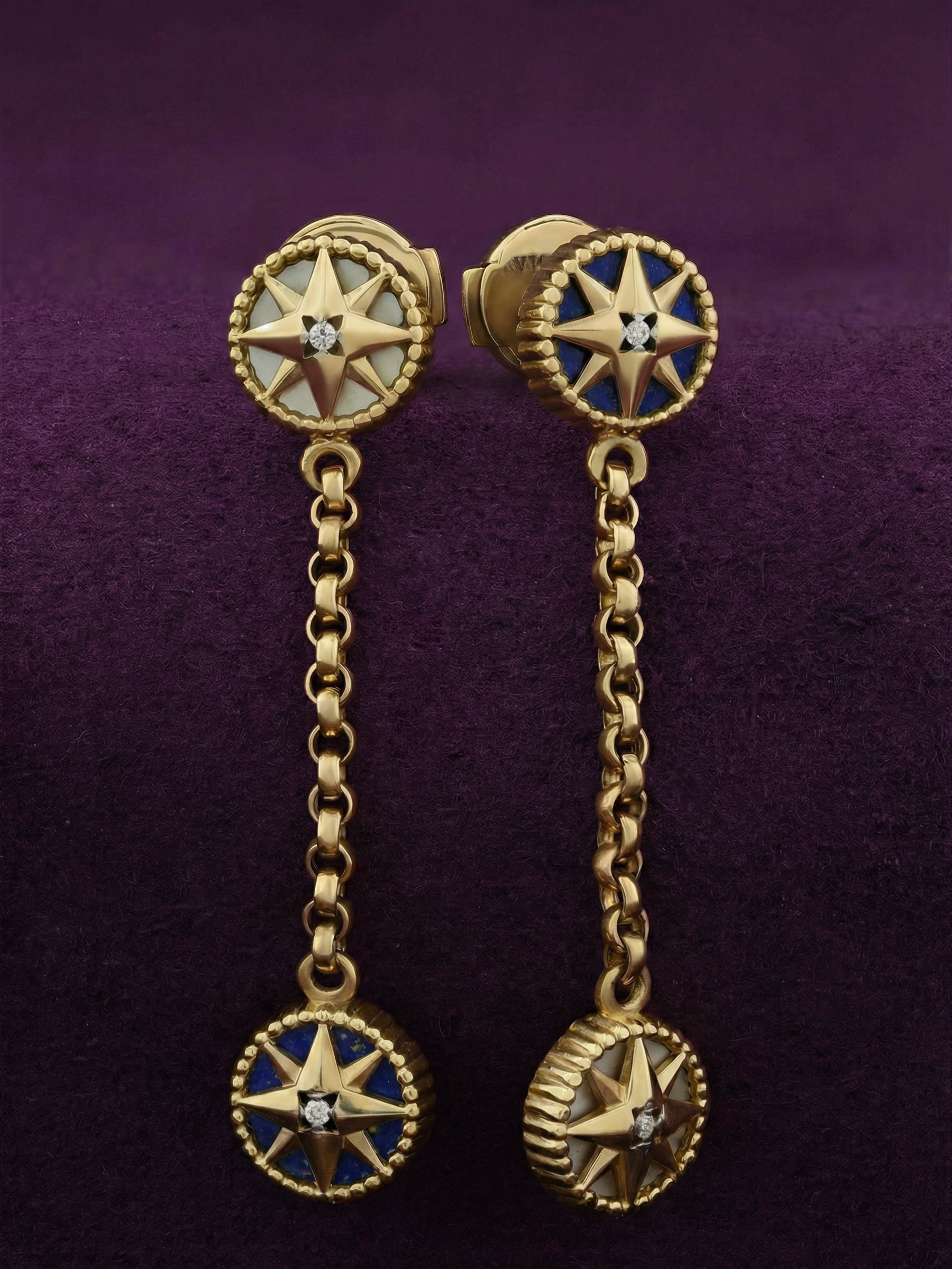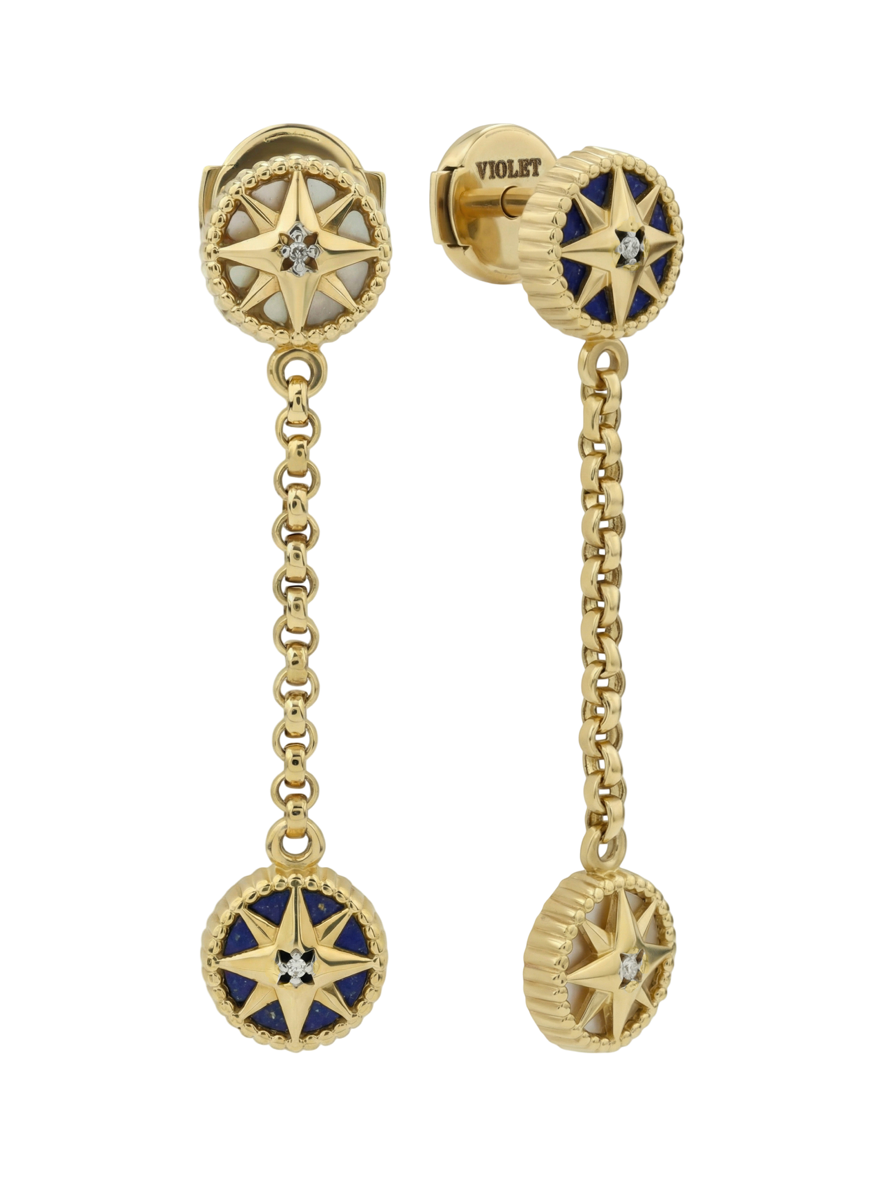 Серьги из лимонного золота c бриллиантами, лазуритом и перламутром
