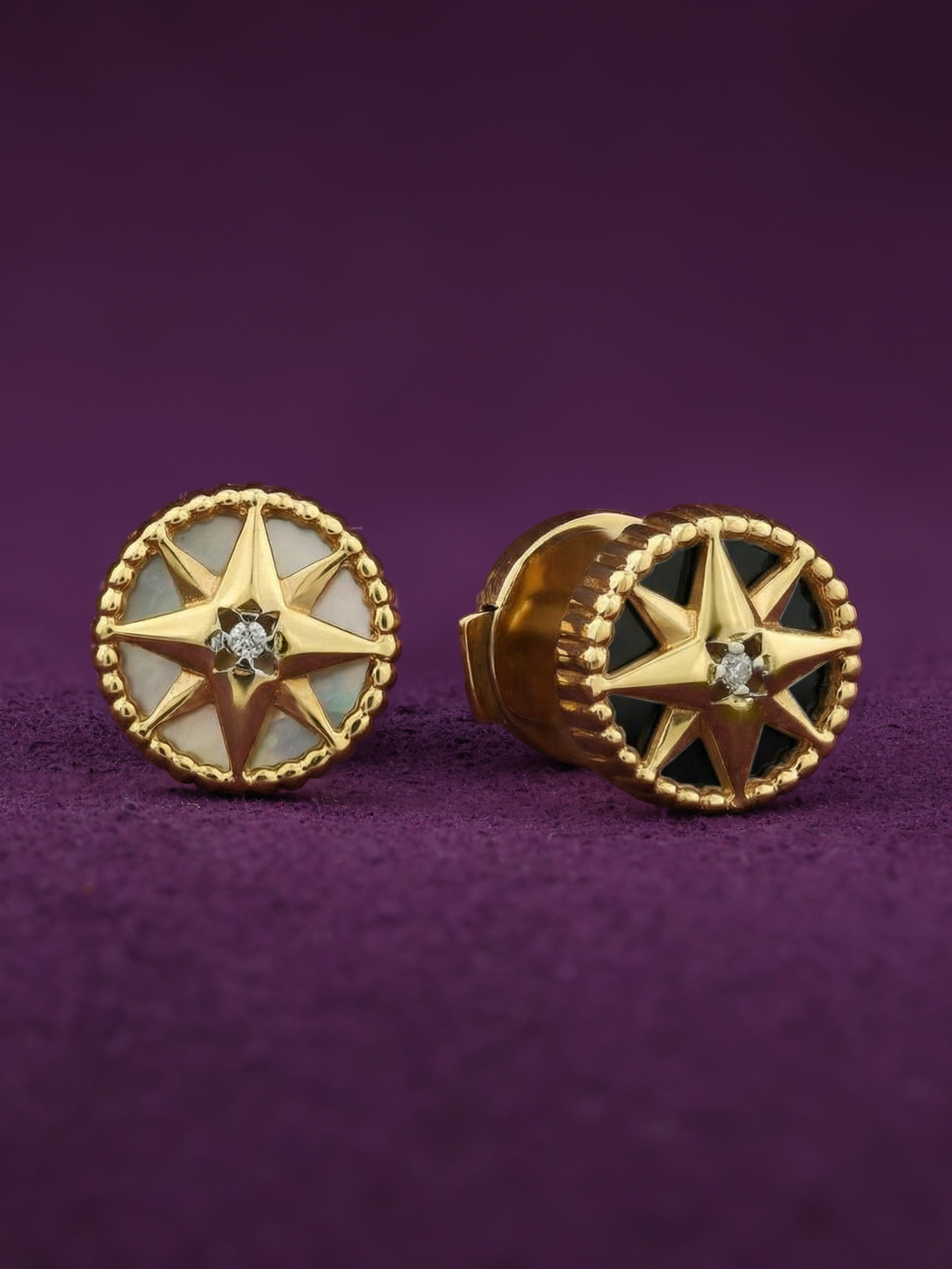 Серьги из лимонного золота c бриллиантами, ониксом и перламутром