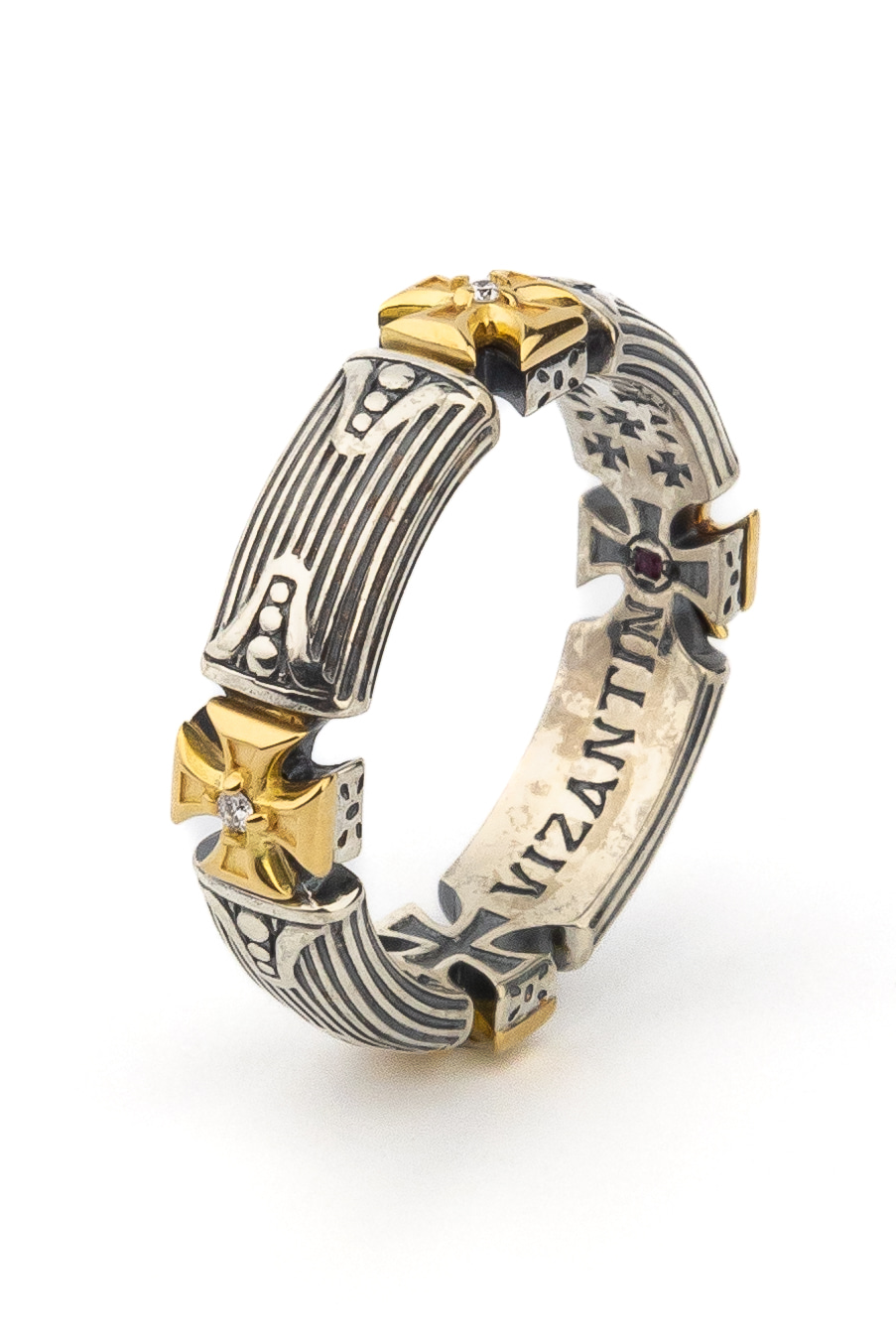 Кольцо из серебра и золота c бриллиантами и рубином