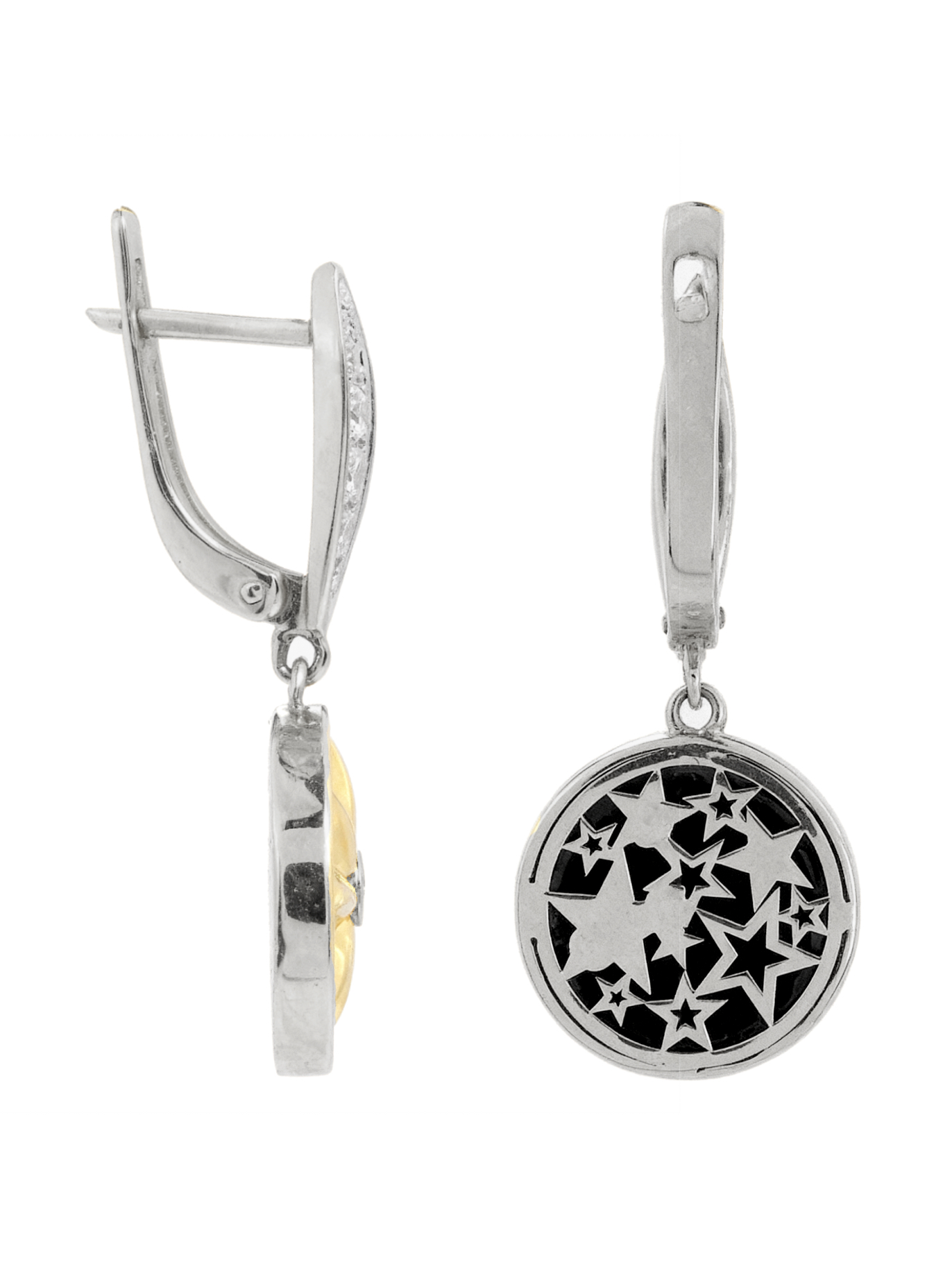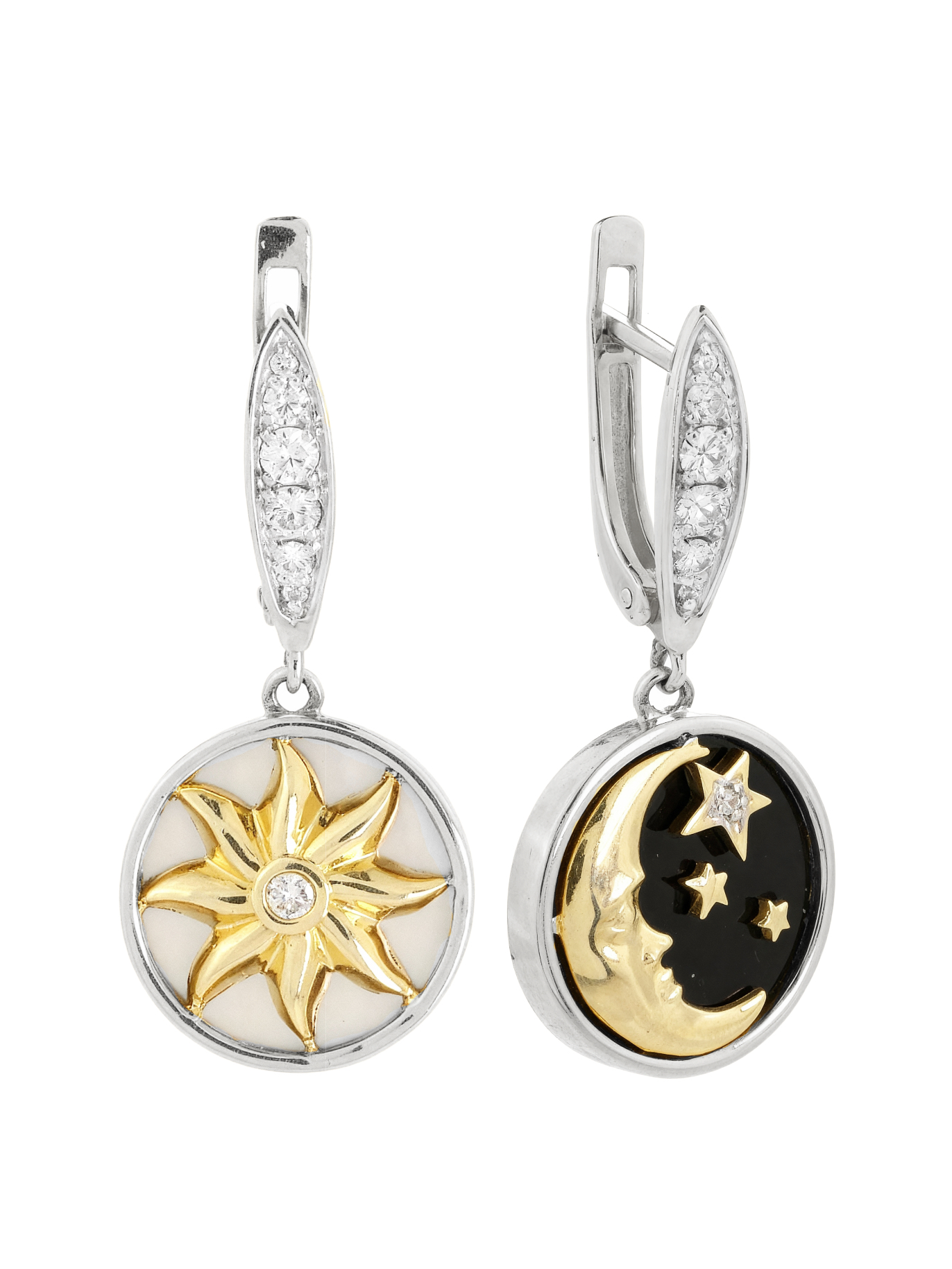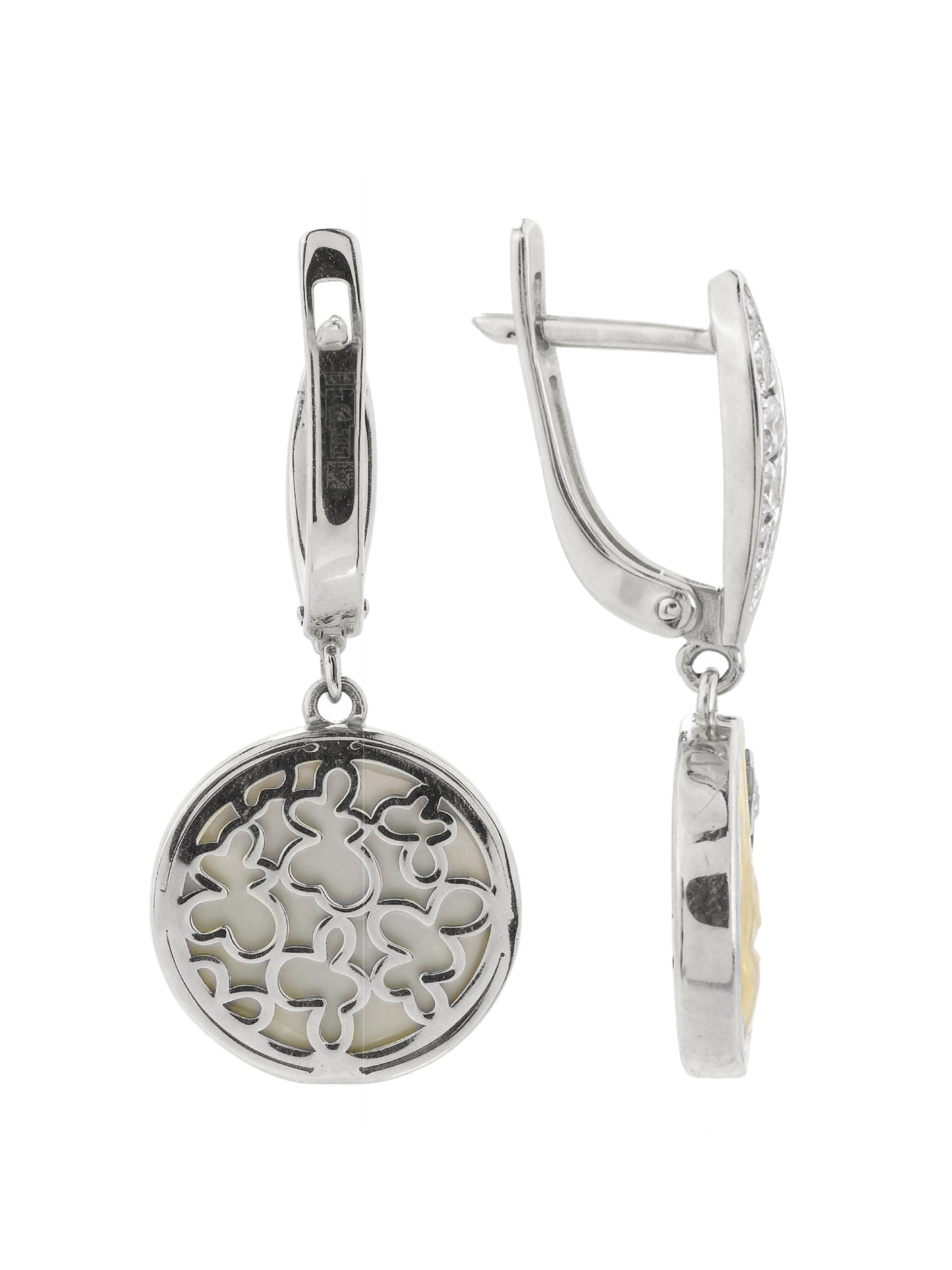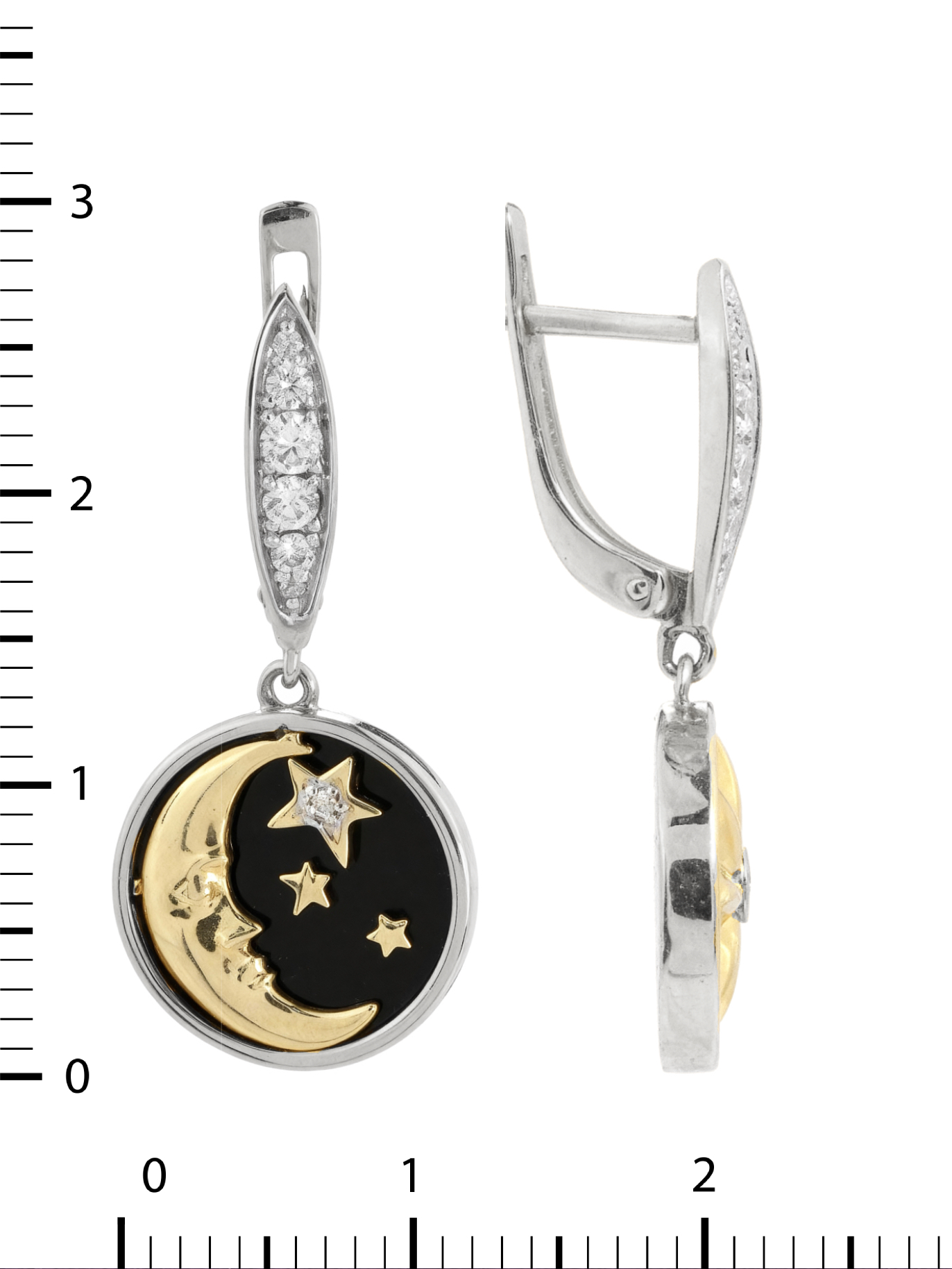 Серьги из белого золота c бриллиантами, ониксом и перламутром