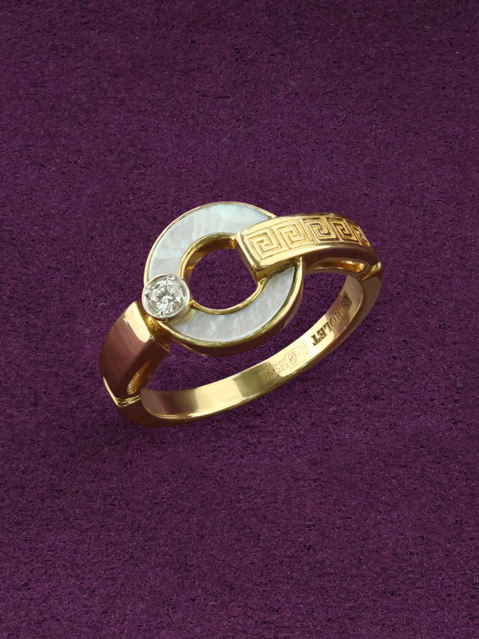Кольцо из лимонного золота c бриллиантами и перламутром