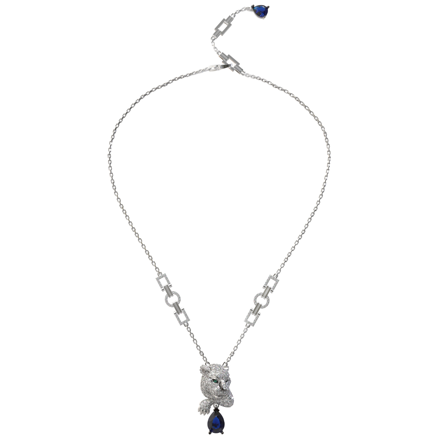 Колье из белого золота c бриллиантами, сапфиром и изумрудом