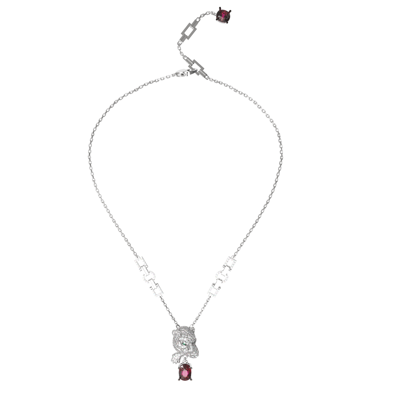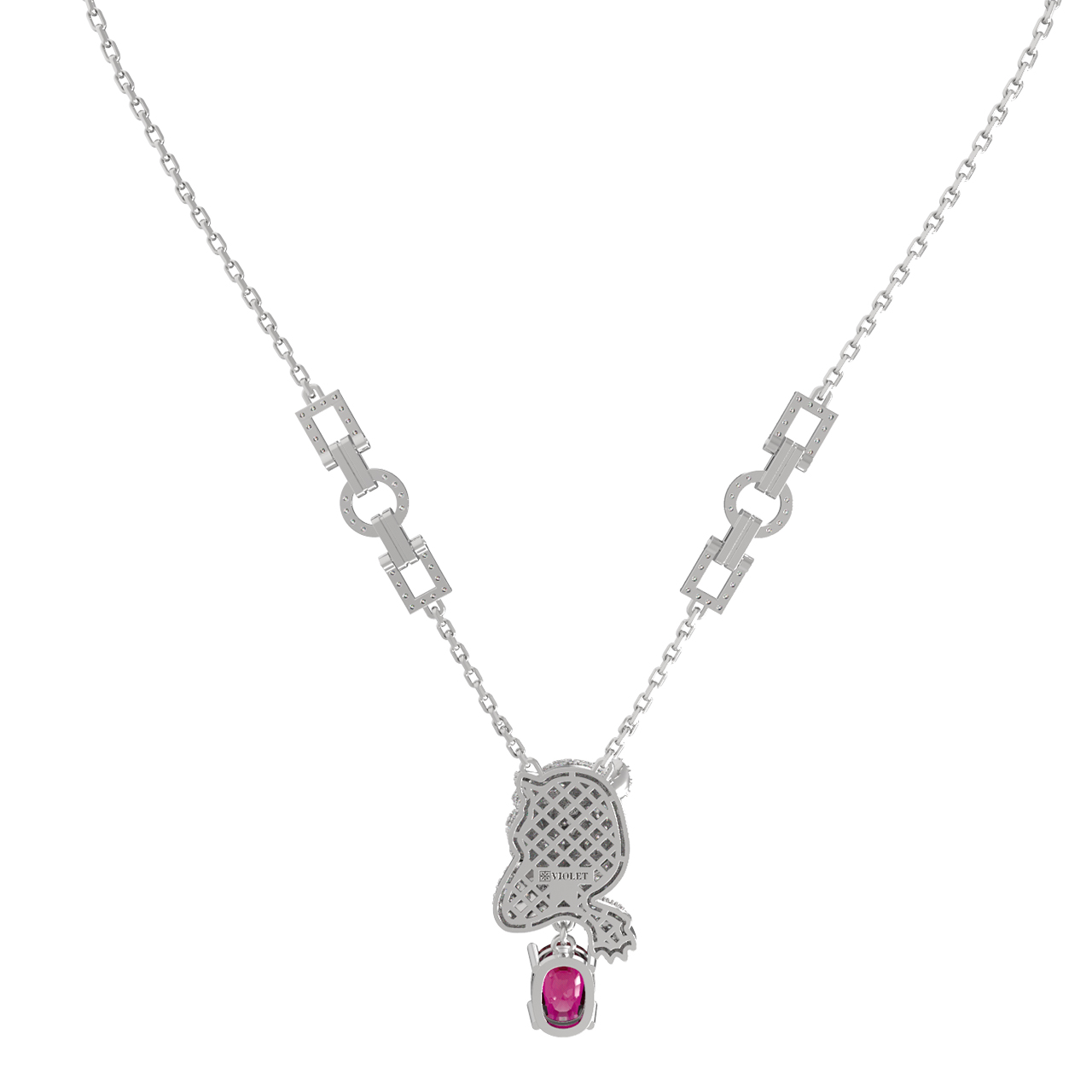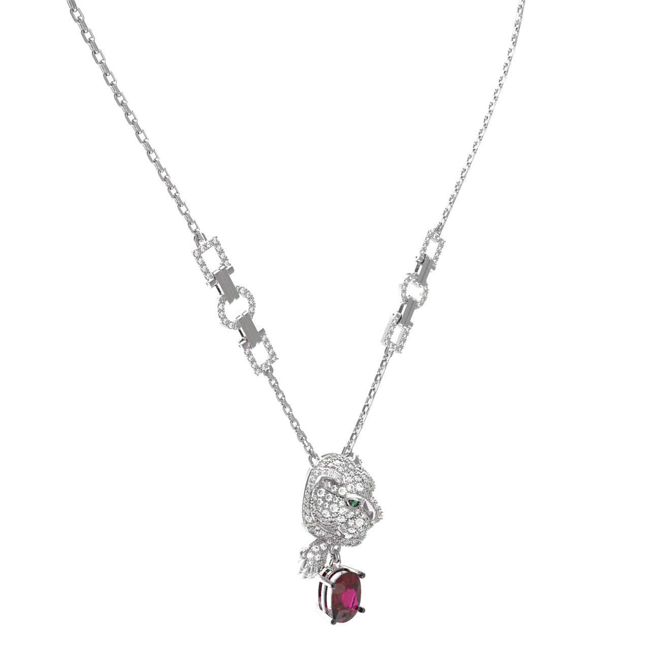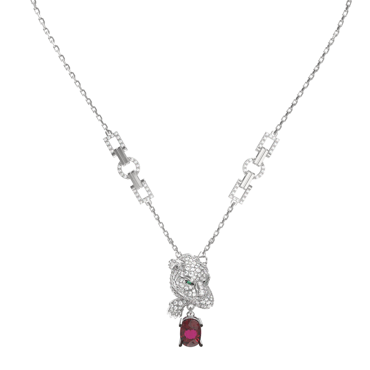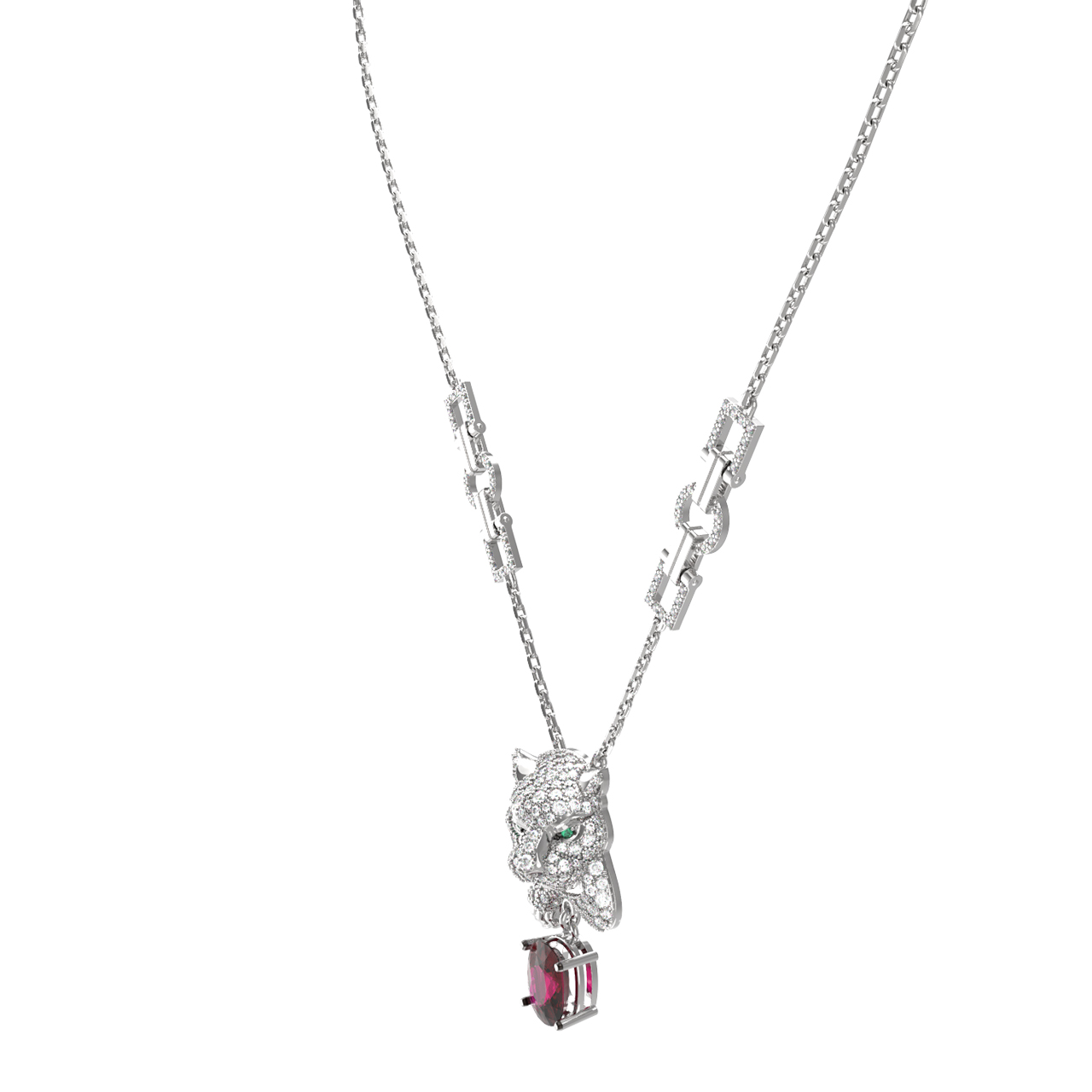 Колье из белого золота c бриллиантами, рубином и изумрудом
