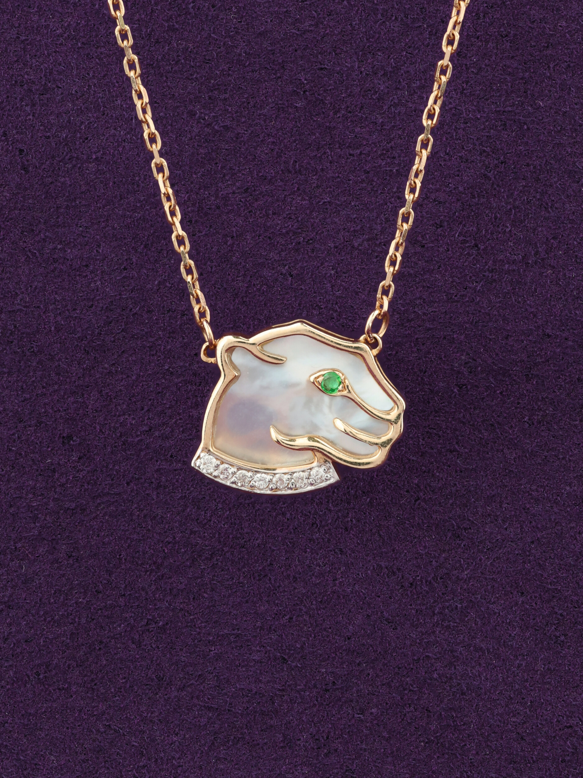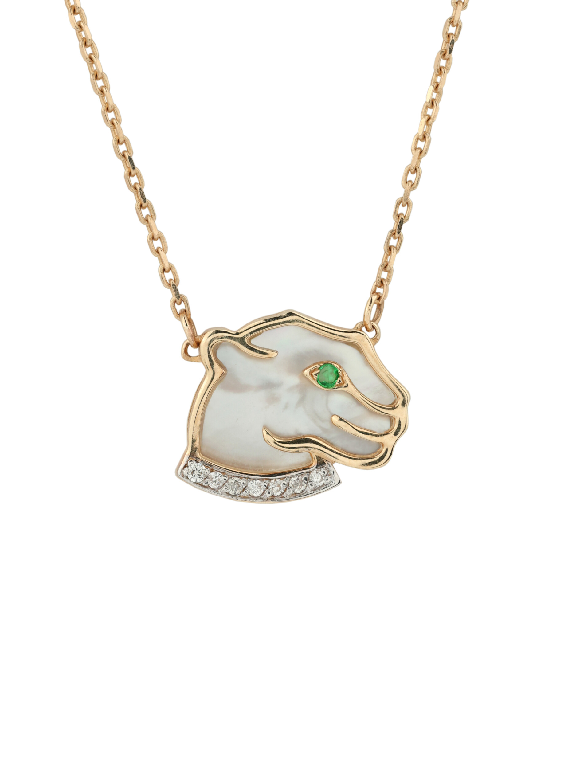 Колье из золота c бриллиантами, изумрудом и перламутром