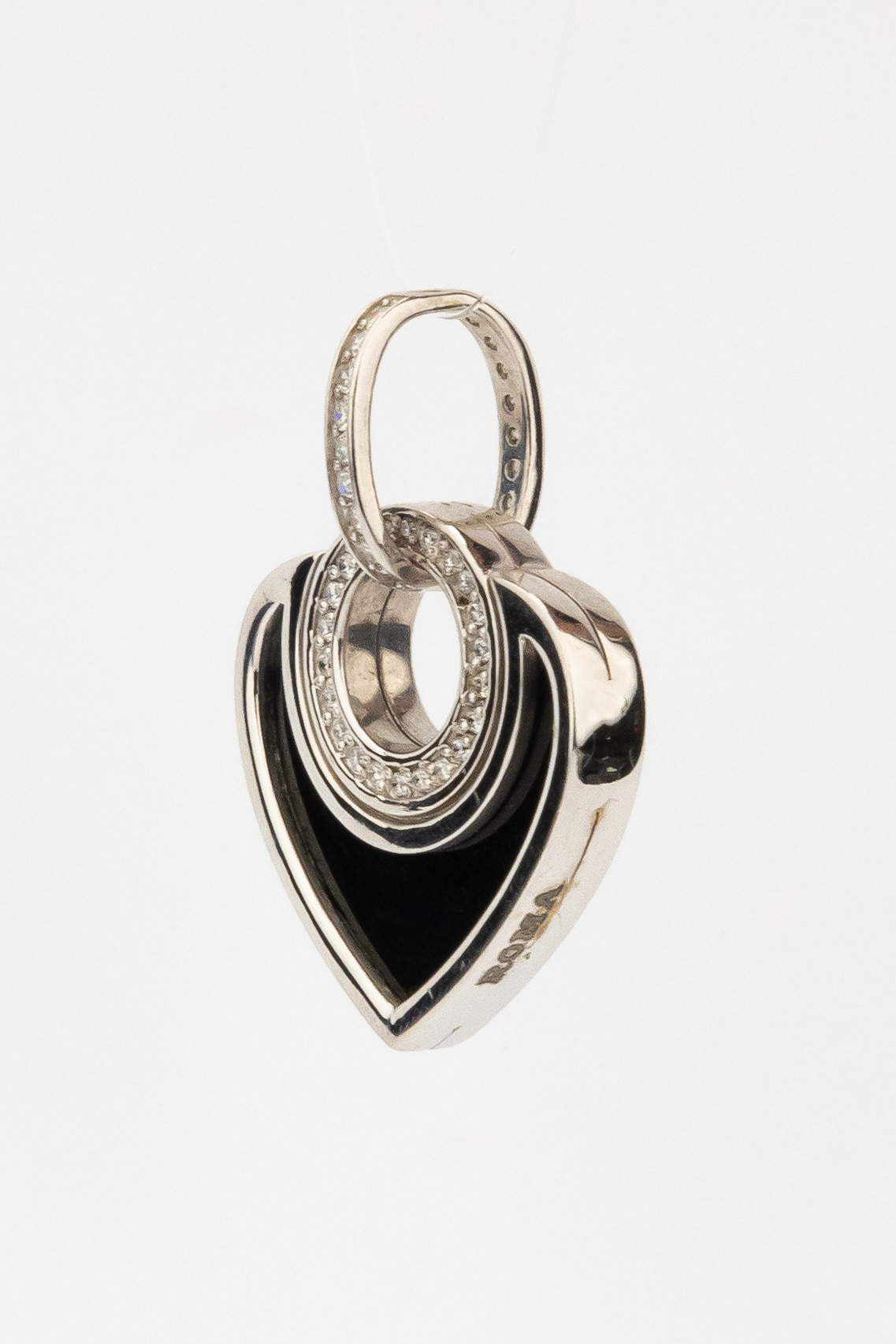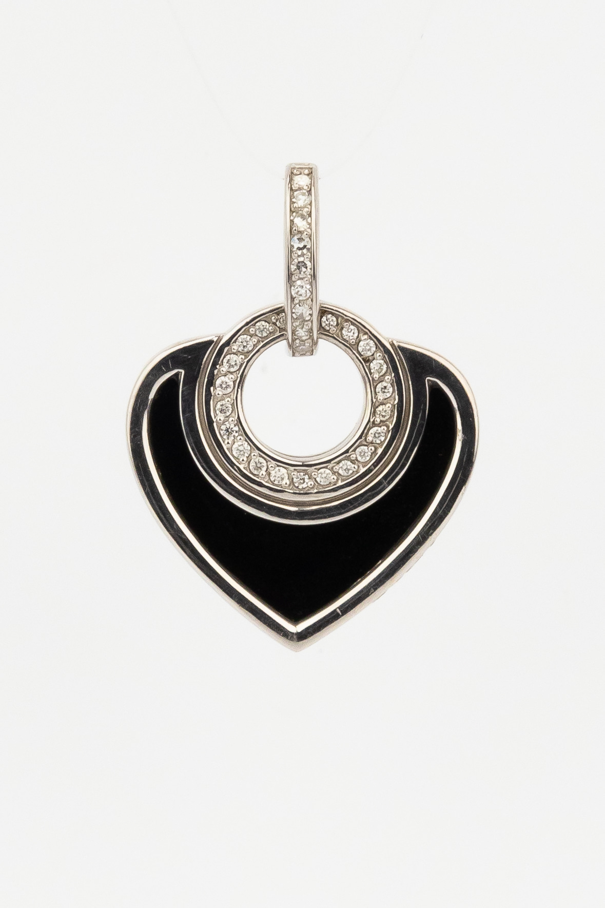 Подвеска из белого золота c бриллиантами, ониксом и перламутром