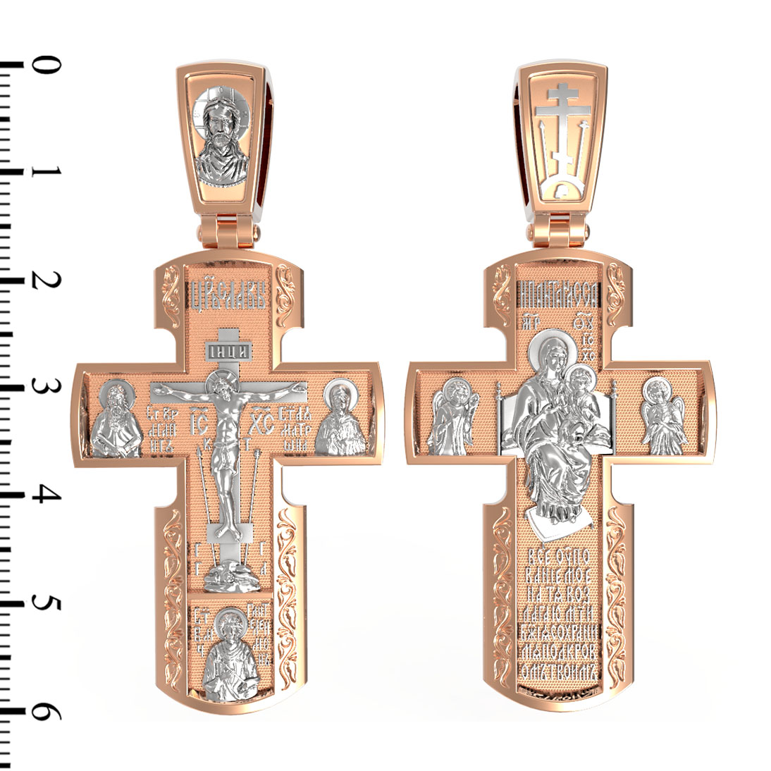 Внизу креста написана молитва обращенная к Божией Матери «Все упование мое на Тя возлагаю, Мати Божия, сохрани мя под кровом Твоим».