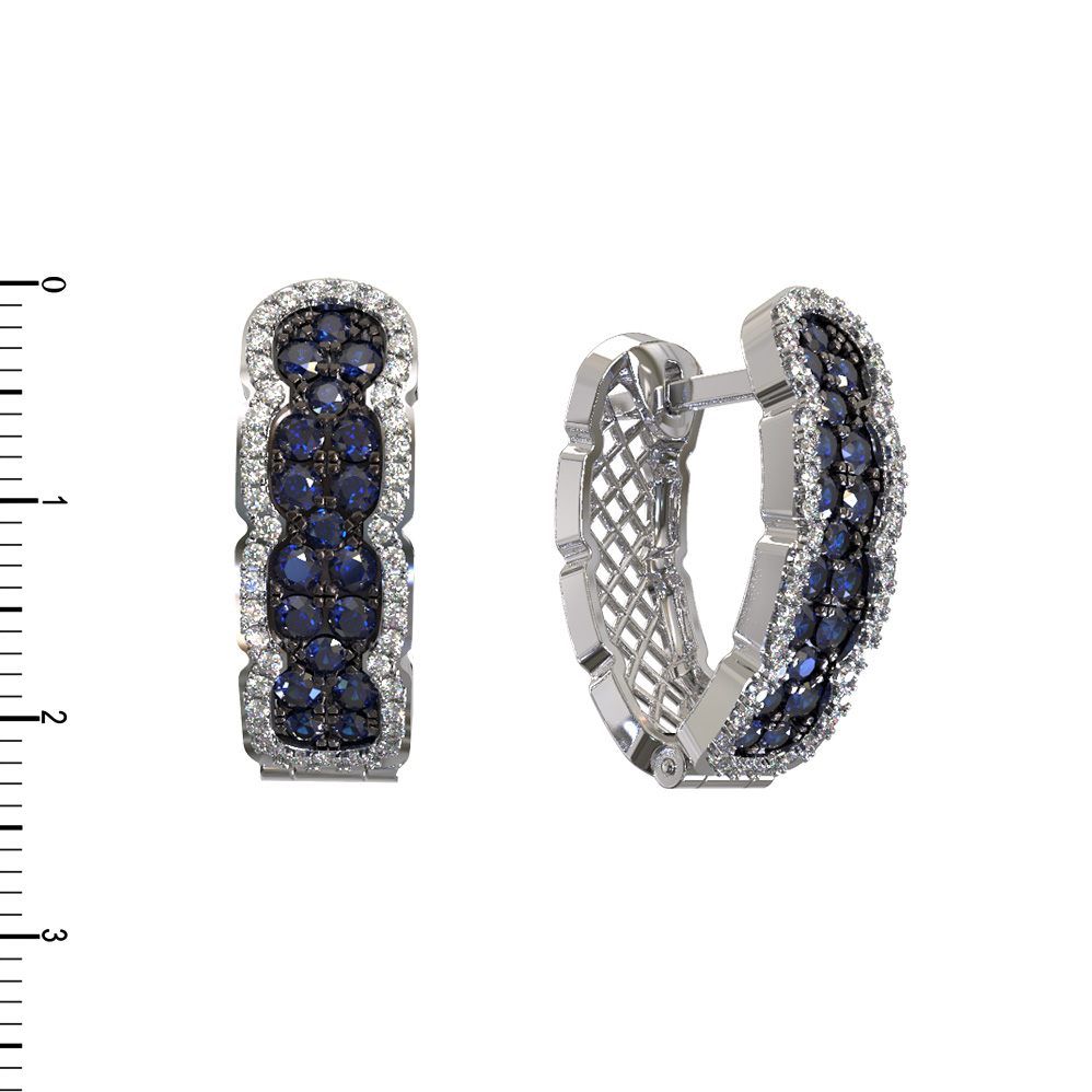 Серьги из белого золота c бриллиантами и сапфиром