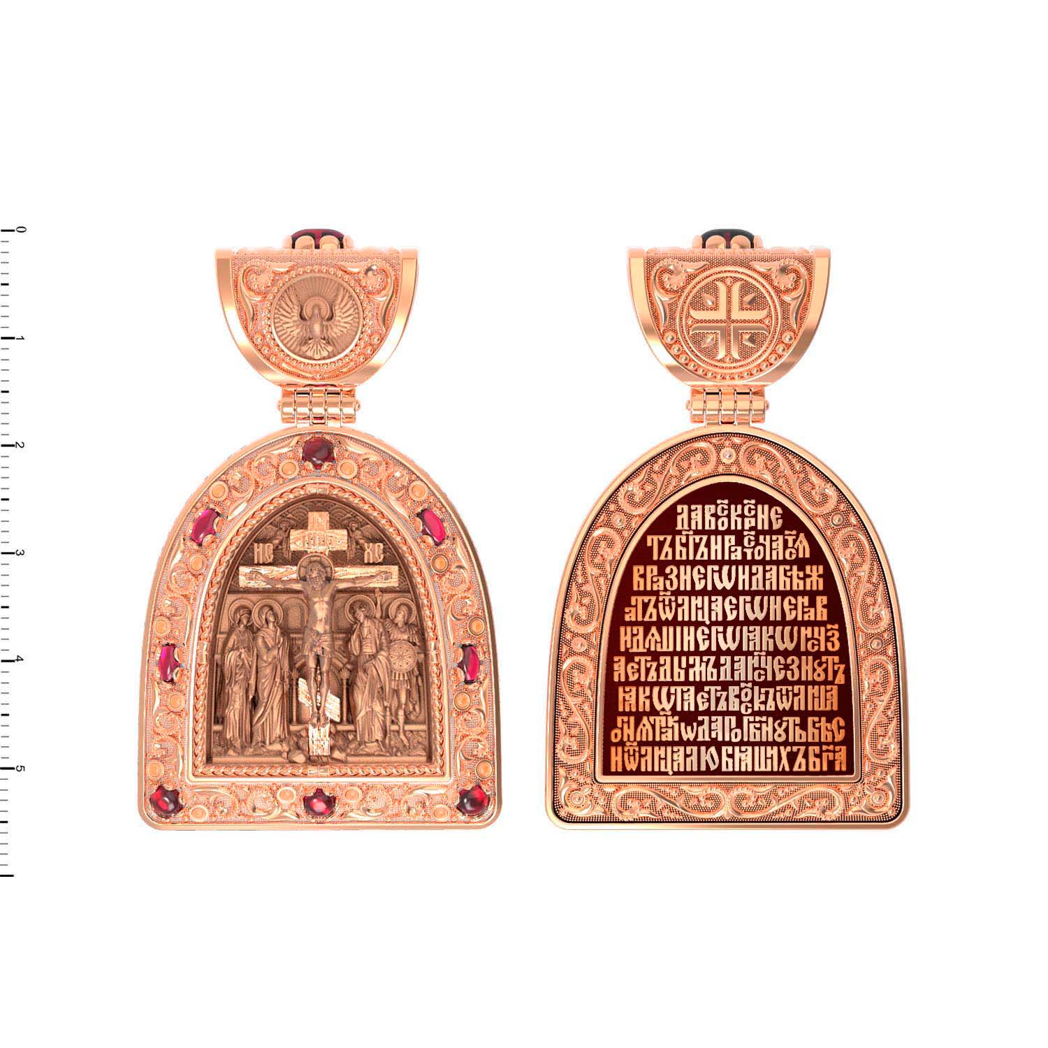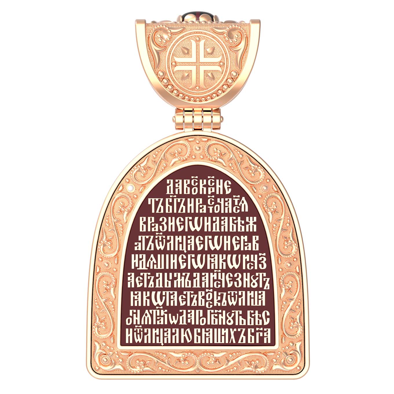 На обороте образка молитва Животворящему Кресту Господню «Да воскреснет Бог, и расточатся врази Его, и да бежат от лица Его ненавидящии Его. Яко исчезает дым, да исчезнут; яко тает воск от лица огня, тако да погибнут беси от лица любящих Бога»