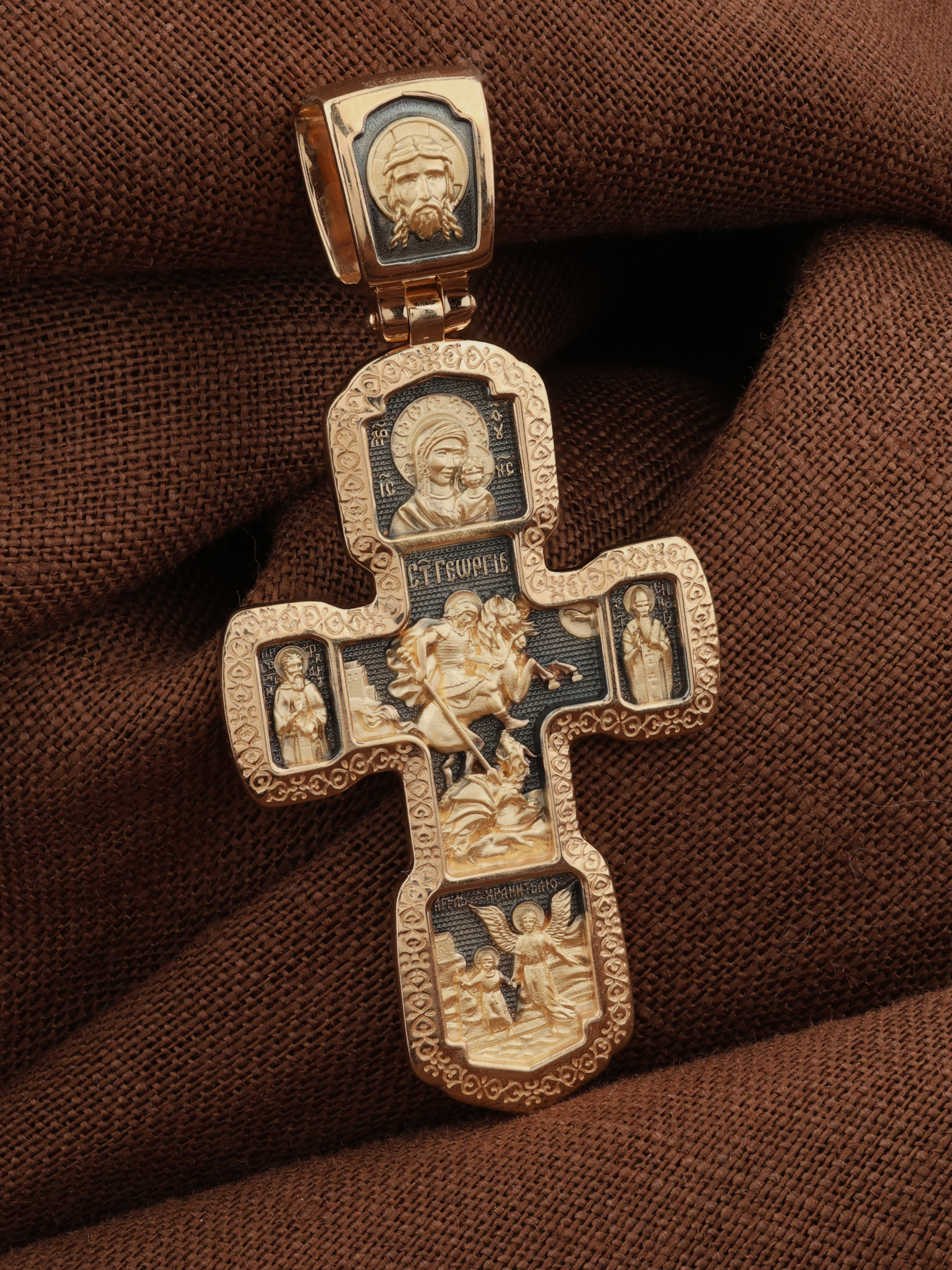 В центральной части оборота креста изображен Георгий Победоносец — покровителем и защитником воинов.