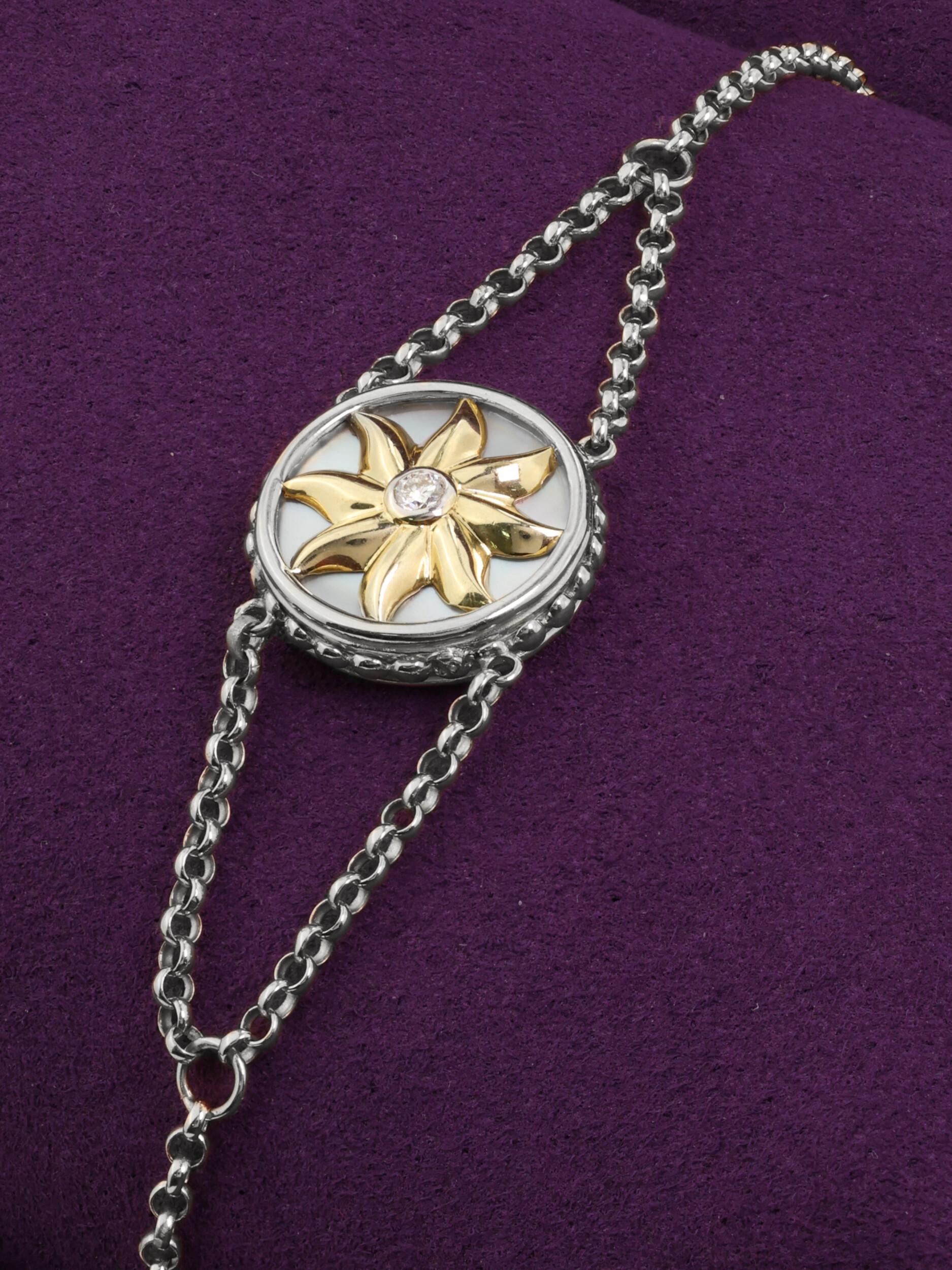 Браслет из белого золота c бриллиантами, ониксом и перламутром