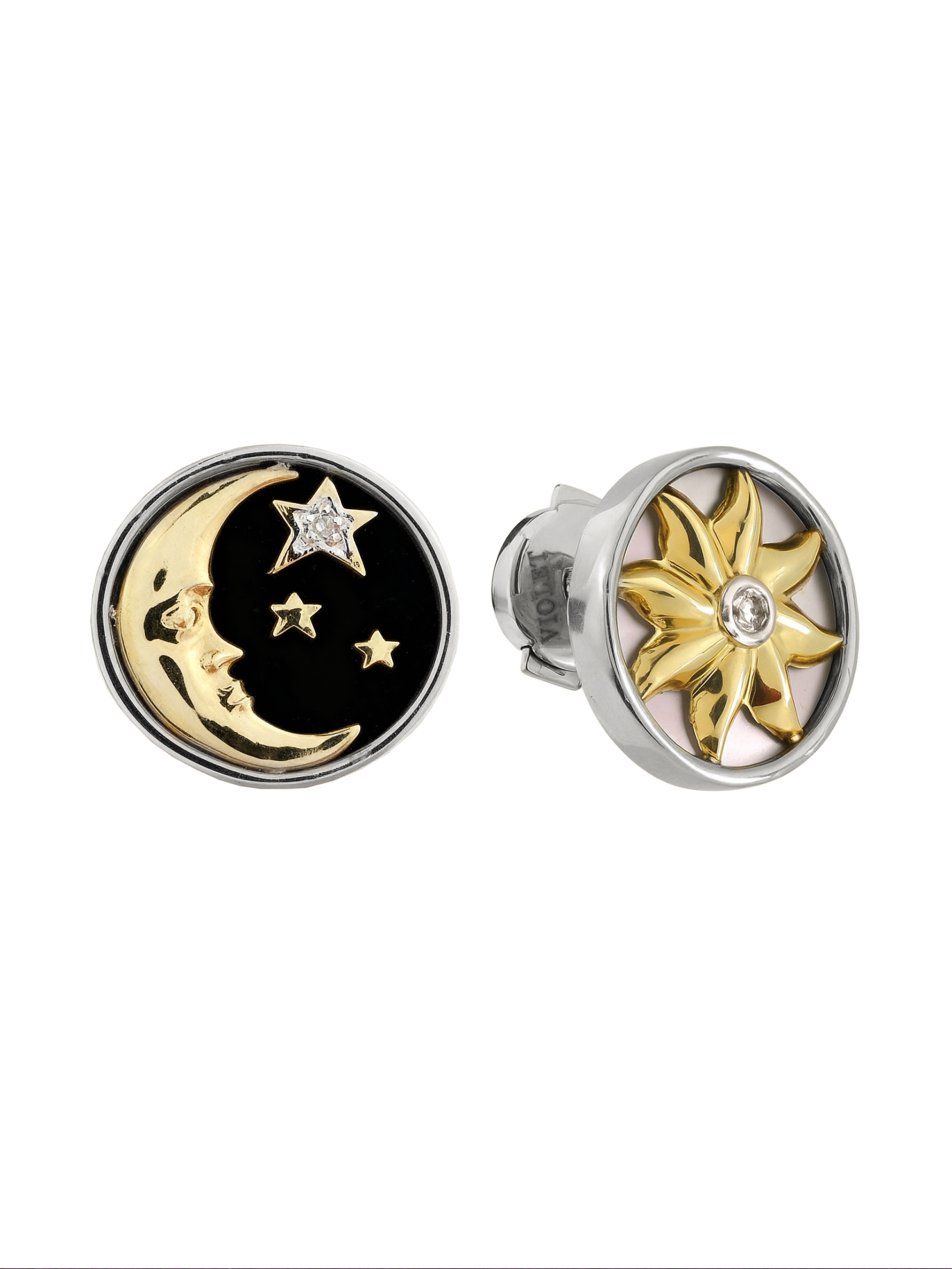 Серьги из белого золота c бриллиантами, ониксом и перламутром