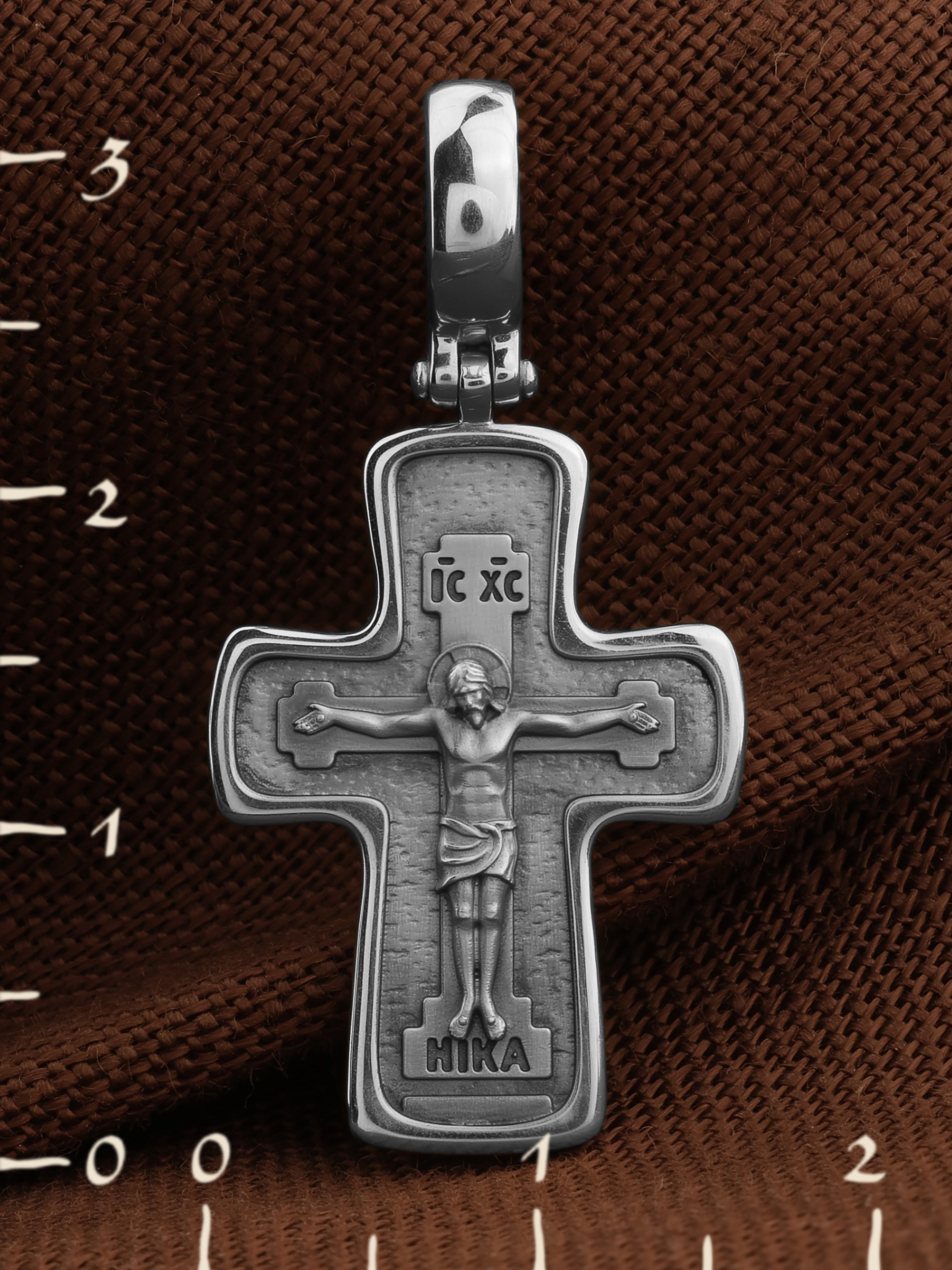На лицевой стороне креста изображено Распятие Господа и Спасителя нашего Иисуса Христа, отдавшего Себя на смерть, для искупления грехов мира. Крест является символом жертвенной любви Всеблагого Бога к падшим людям, всепобеждающим духовным оружием христиан, основанием и средоточием церковной жизни. Господь сказал: кто хочет идти за Мною, отвергнись себя, и возьми крест свой, и следуй за Мною. (Мк. 8: 34). Надпись «IС ХС» означает Иисус Христос. Надпись –«НИКА» означает победитель.